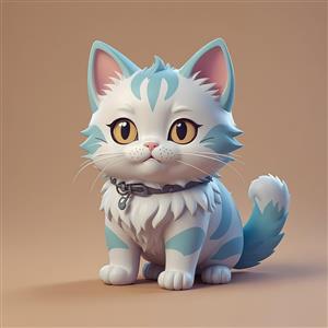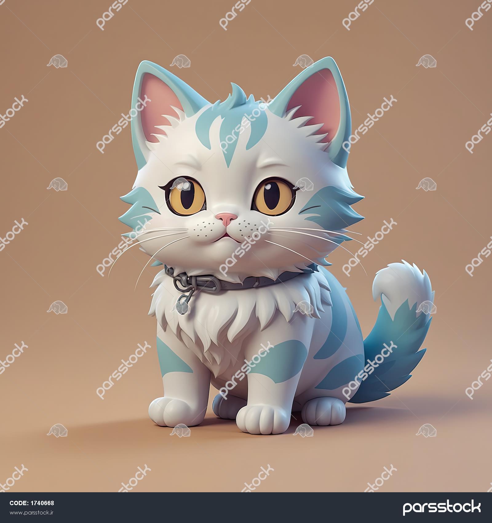 گربه کارتونی طوسی با قلاده آویز آبی و چشم‌های عسلی، تصویر کیوت دکوراتیو
