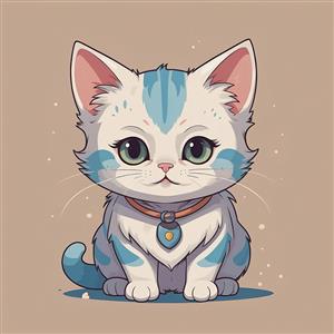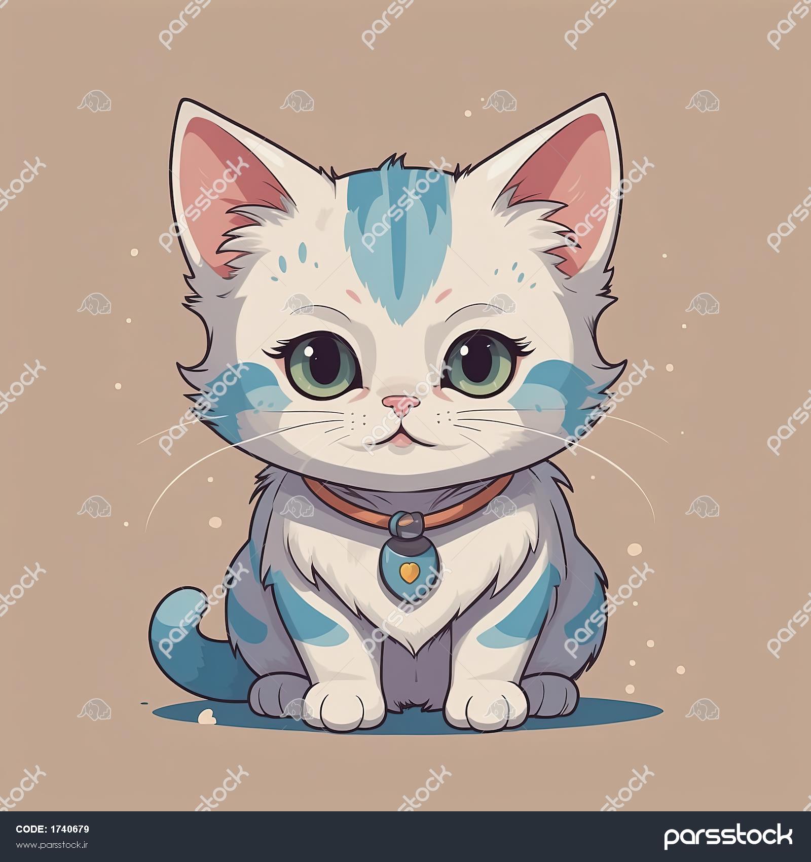 وکتور گربه کارتونی سفید و آبی خالدار با قلاده