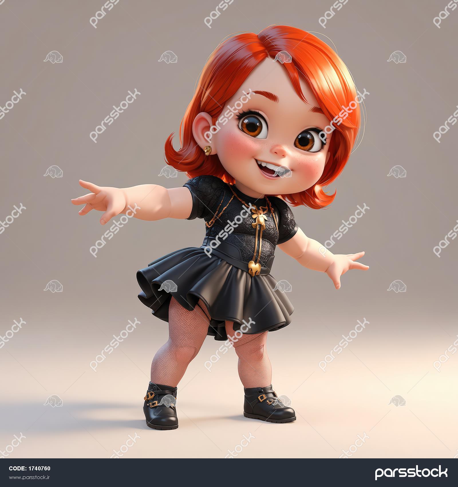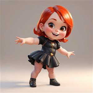 فیگور کارتونی دختر شجاع مو کوتاه مشکی با لباس چرمی قهرمانی و ژست با ابهت