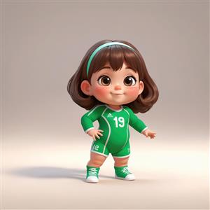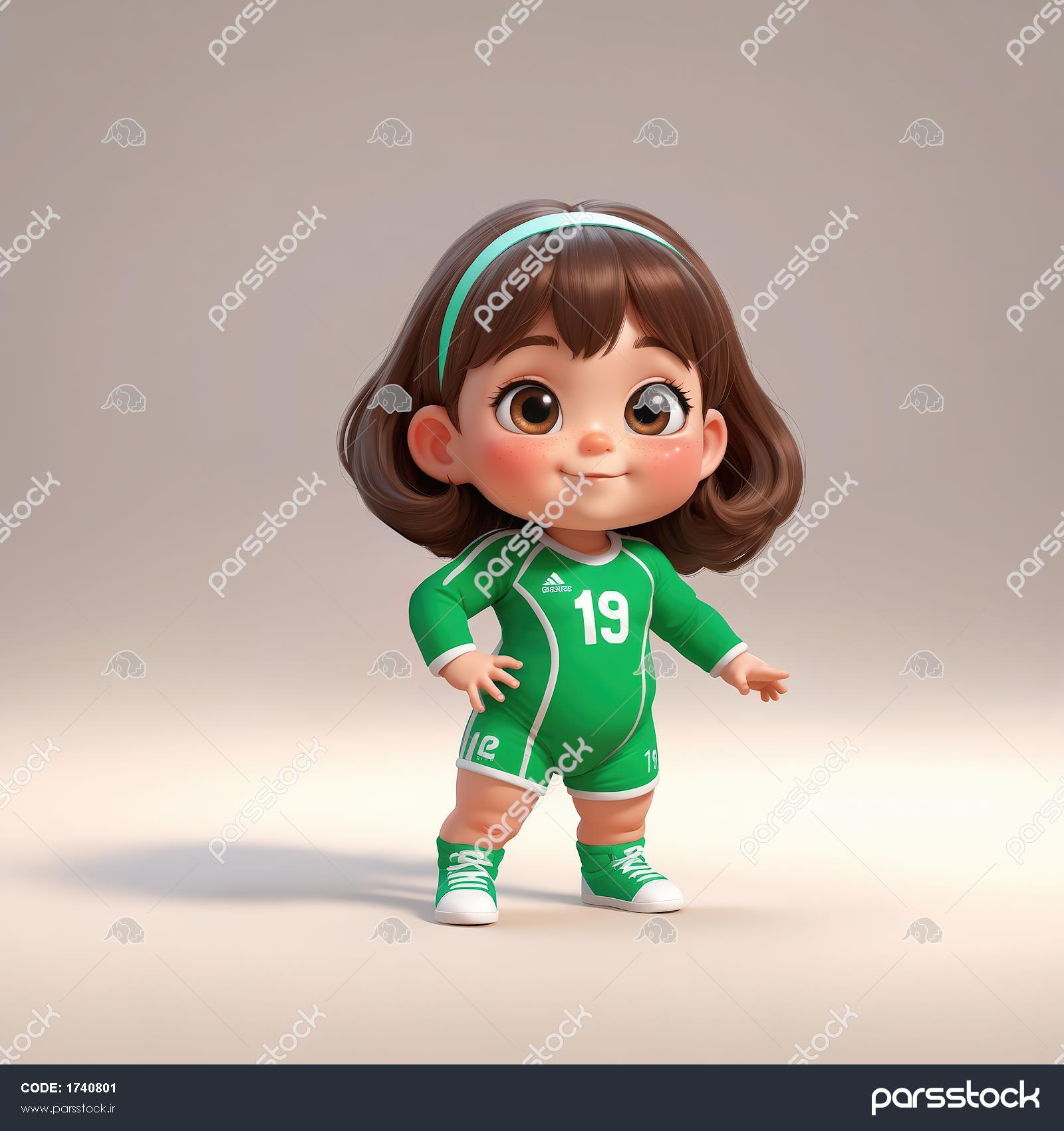 کاراکتر دختر بامزه و کارتونی با لباس ورزشی سبز و هدبند