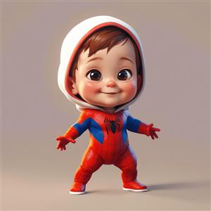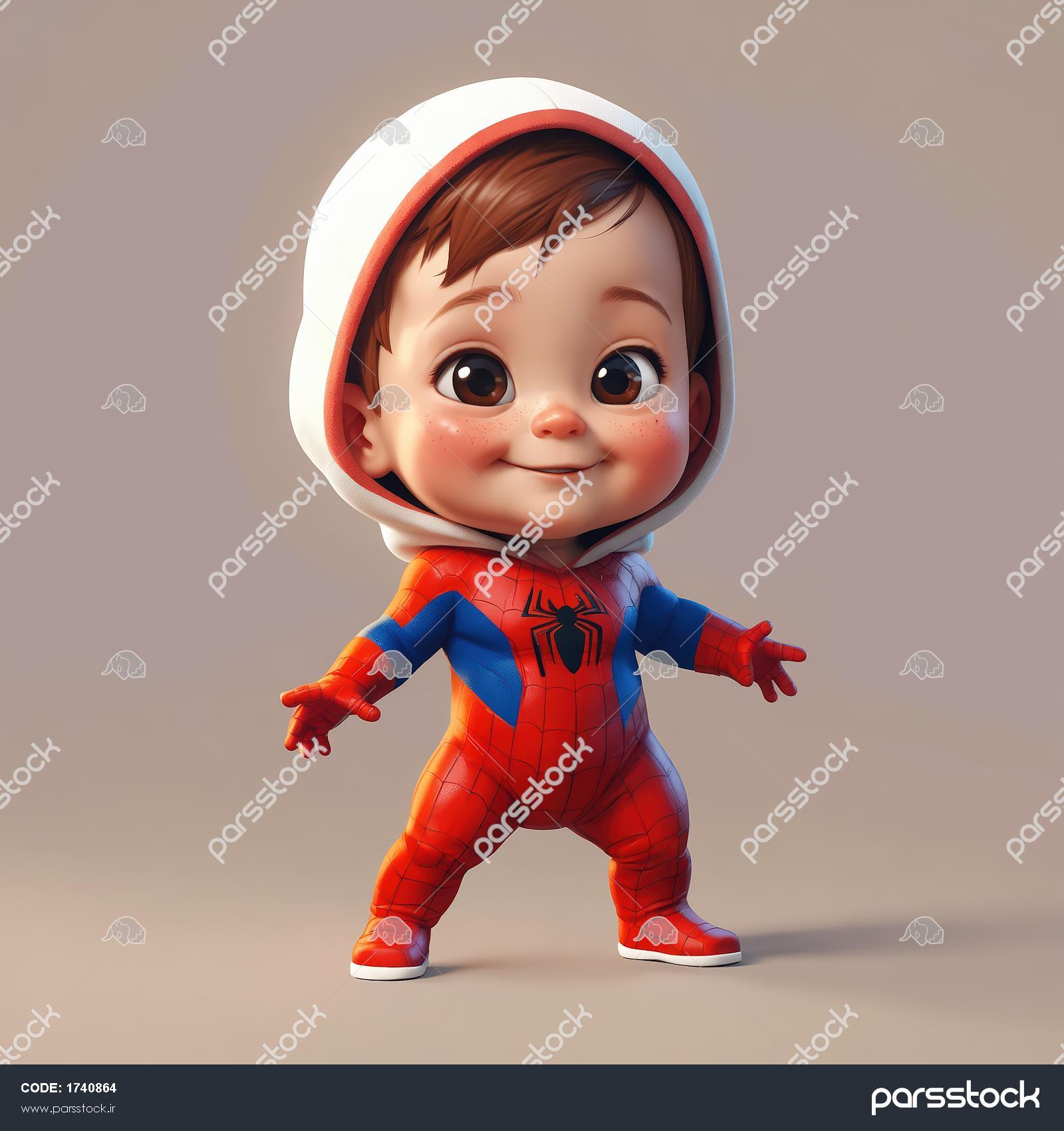 عکس باکیفیت نوزاد پسر اسپایدرمن با کلاه سفید، طرح کارتونی سه‌بعدی با ژست ایستاده، مناسب چاپ عریض