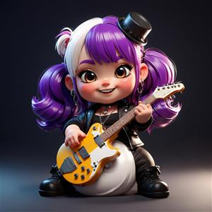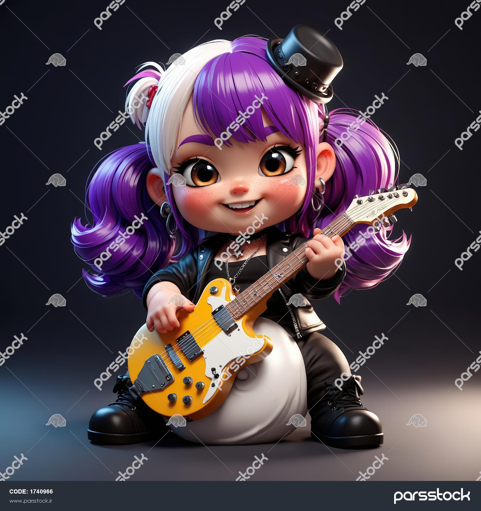 عروسک چیبی دختر بلوند با لباس چرم، زنجیر و زیورآلات اسکلتی، مناسب چاپ