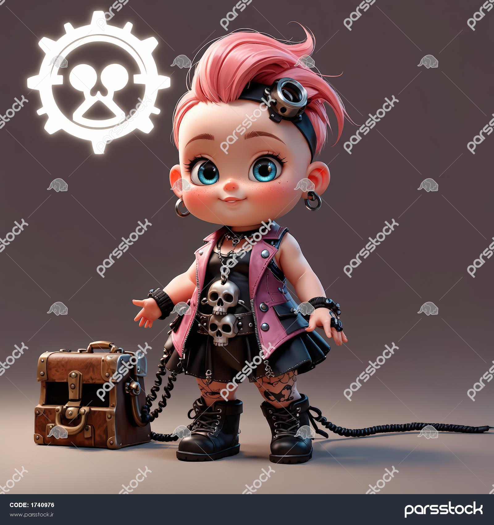 عروسک چیبی دختر بلوند با موهای دم اسبی، لباس راک چرم و اکسسوری اسکلتی عروسک چیبی دختر با موی صورتی دم اسبی، لباس چرم و کتانی سفید، استایل فانتزی راک تصویر عروسک چیبی دختر با هدفون و لباس مشکی راک، موی صورتی کوتاه عروسک دختر راکر چیبی با گیتار برقی مشکی، موهای صورتی و استایل گوثیک عروسک چیبی با استایل متال راک، جلیقه و شلوار چرمی مشکی، زنجیر و جمجمه، مناسب پوستر عروسک دختر چیبی با موی صورتی، هدبند خرسی و لباس پاپ راک در پسزمینه صورتی عروسک چیبی دختر با موی صورتی، لباس چرم و گوشهای خرسی مشکی، مناسب چاپ پوستر عروسک چیبی دختر با ژاکت صورتی، تیشرت اسکلت و استایل راک در فضای صنعتی عروسک چیبی دختر با لباس راک چرمی، جوراب شلواری و پسزمینه نئون، مناسب پوستر عروسک چیبی دختر با کلاه کاپیتانی اسکلتی، موی صورتی و گیتار سفید نمایش همه