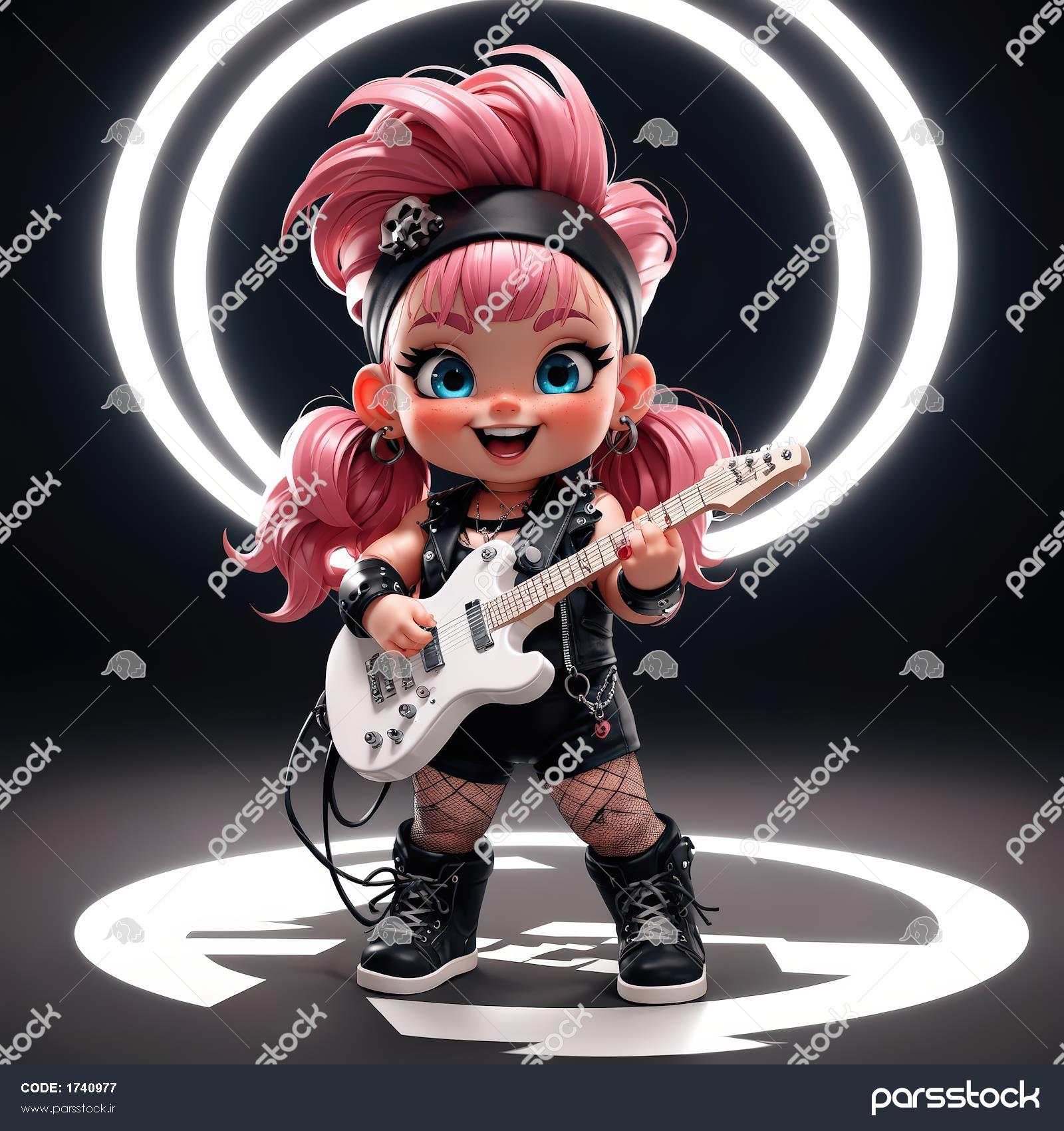 عروسک چیبی دختر با کلاه کاپیتانی اسکلتی، موی صورتی و گیتار سفید عروسک چیبی دختر با موی صورتی، گیتار سفید، کلاه راک و پسزمینه نورپردازی شده عروسک چیبی با استایل متال راک، جلیقه و شلوار چرمی مشکی، زنجیر و جمجمه، مناسب پوستر عروسک چیبی دختر با کلاه و گیتار سفید، موی صورتی و تتو، پسزمینه صنعتی نئون عروسک چیبی پانک با موی صورتی، گیتار قرمز و پسزمینه اسپیکرهای غولپیکر عروسک چیبی دختر با موی صورتی گوجهای، لباس راک و کفشهای صورتی، مناسب پوستر کودک عروسک دختر راکر چیبی با گیتار آکوستیک نارنجی و لباس مشکی و سفید عروسک چیبی دختر با موی صورتی، لباس راک چرمی و عینک خلبانی، مناسب چاپ عروسک چیبی دختر با موی صورتی، لباس راک چرم و نور نئون پسزمینه دایرهای عروسک چیبی دختر بلوند با لباس چرم، زنجیر و زیورآلات اسکلتی، مناسب چاپ نمایش همه