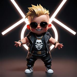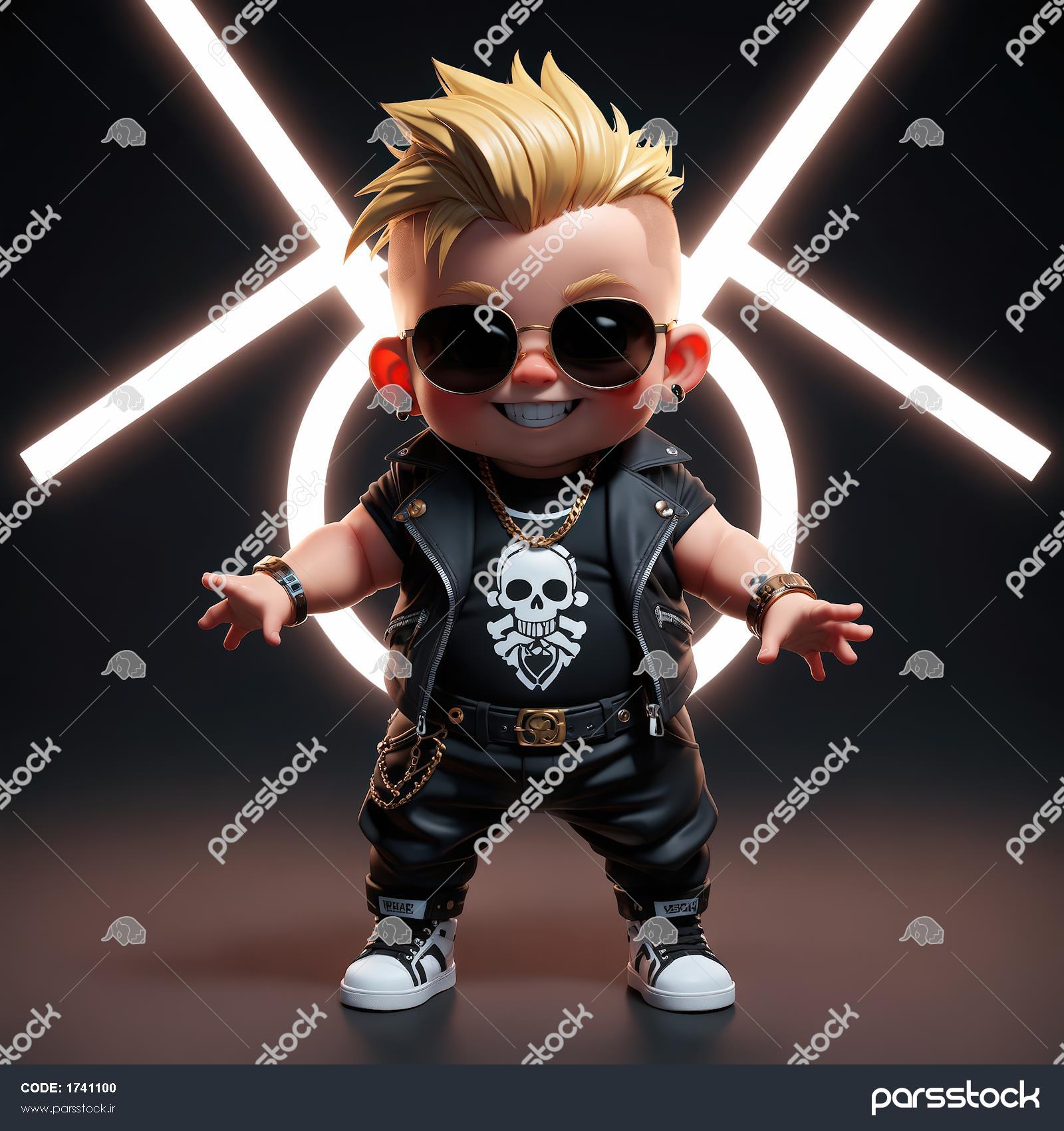 عکس فانتزی شخصیت پانک با موی بلوند و نور نئون ضربدری، طرح دکوراتیو مدرن