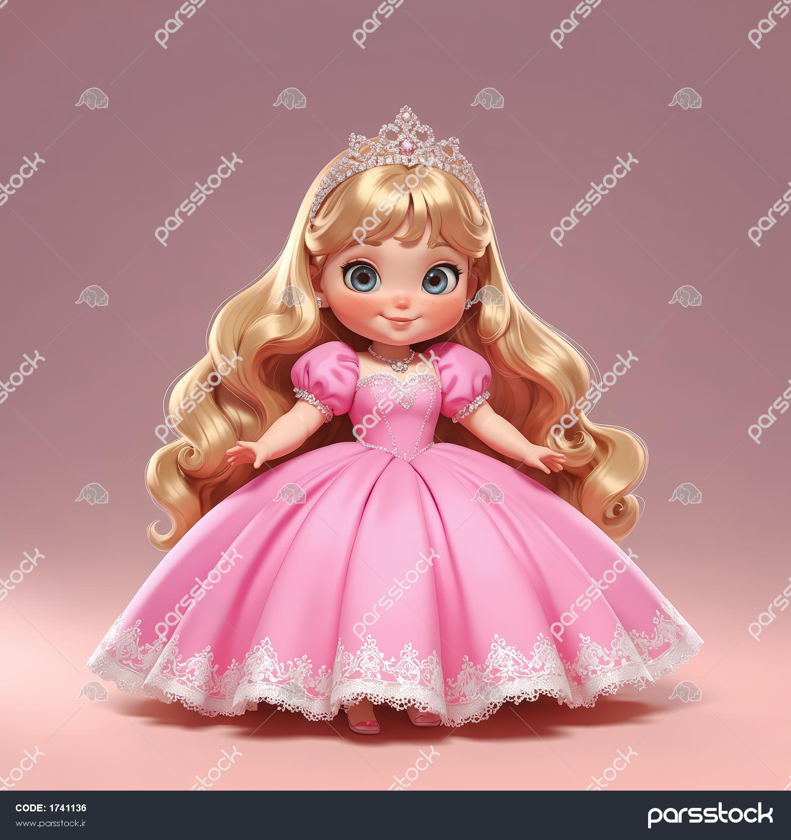 عکس پرنسس زیبا با لباس مجلسی صورتی و تاج برای چاپ باکیفیت