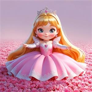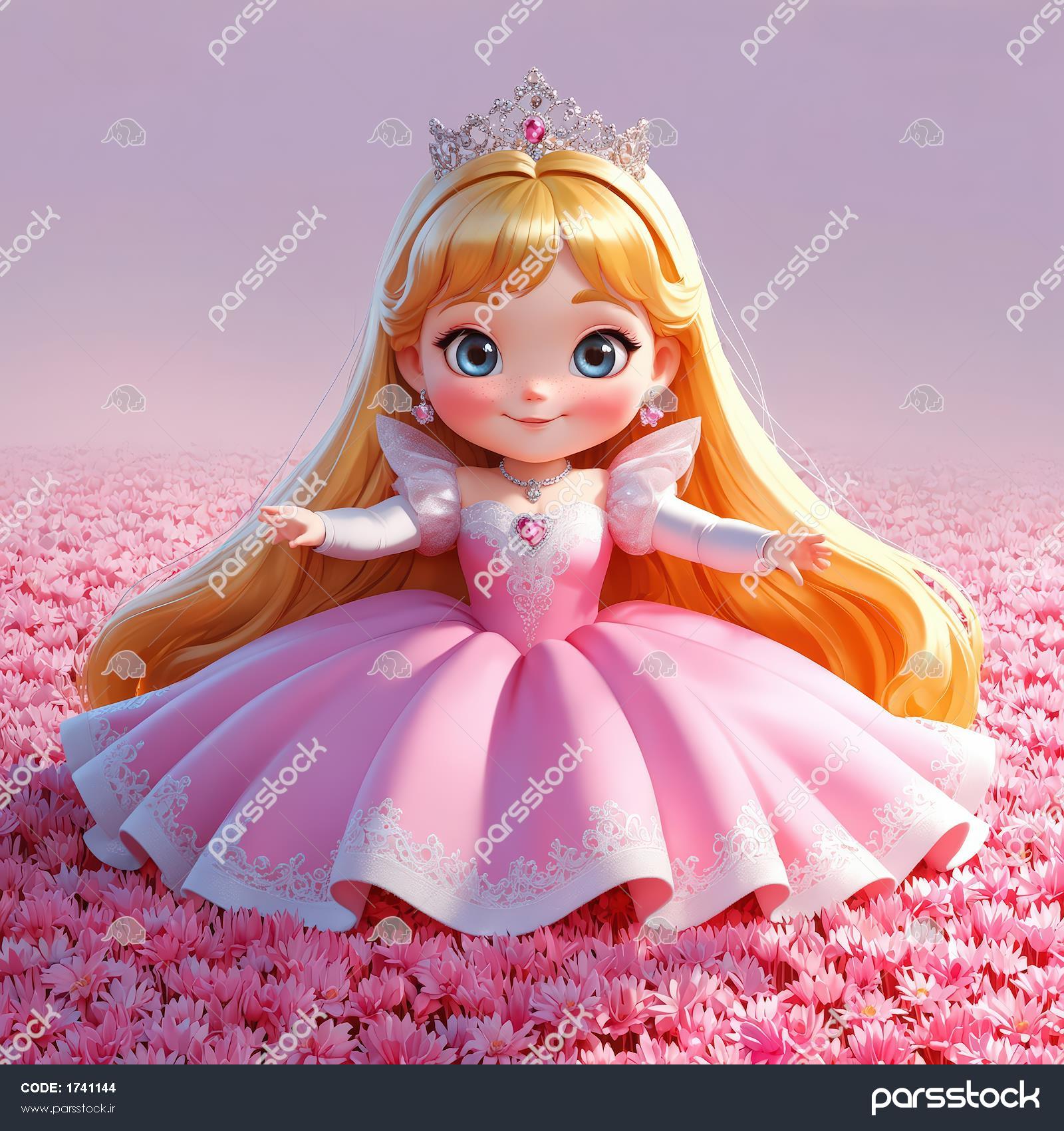 عکس باکیفیت پرنسس در باغ گل صورتی برای تابلو اتاق دخترانه