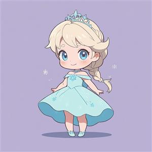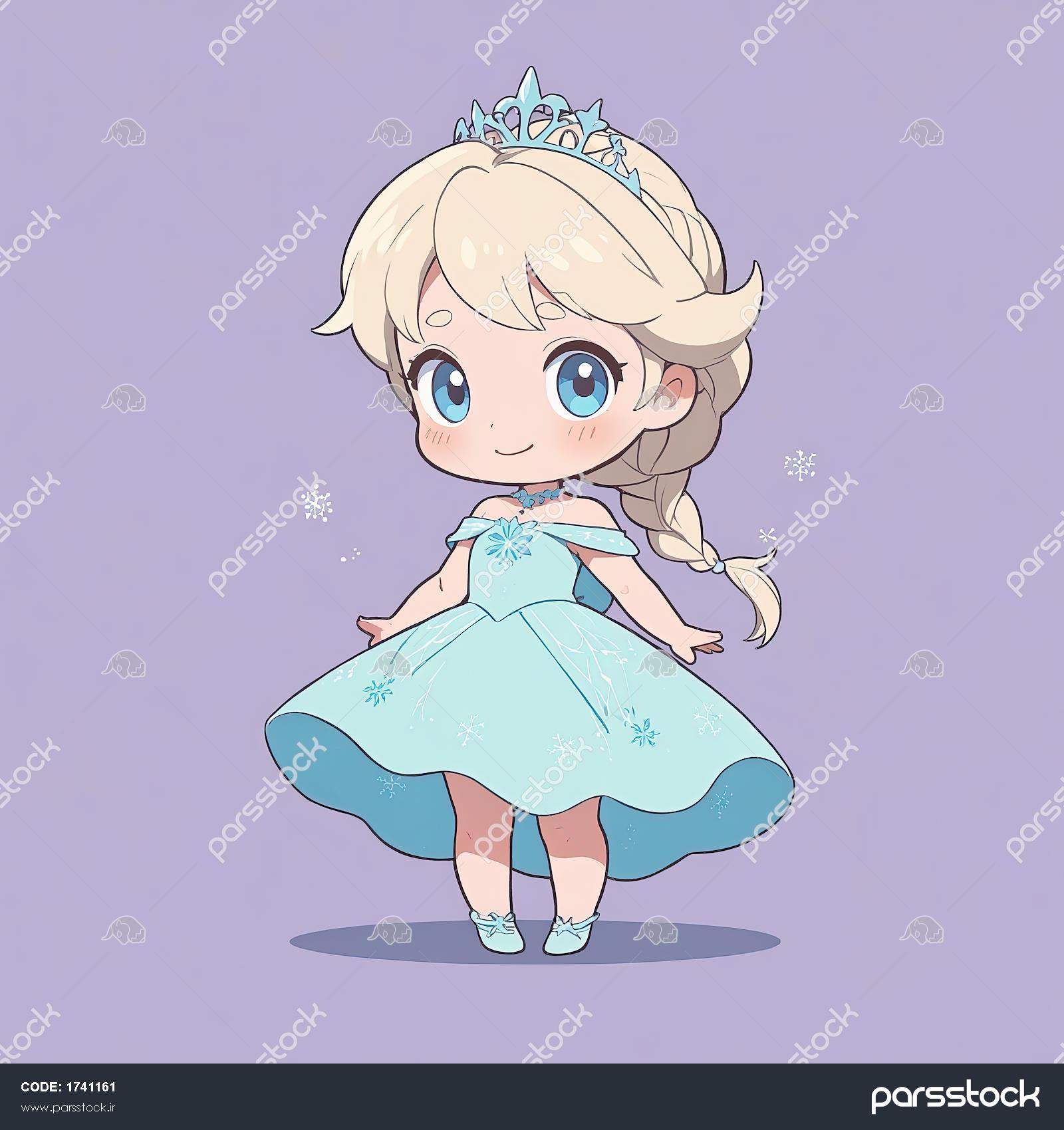 انیمیشن فروزن: ملکه السا با تاج و لباس آبی، تصویرسازی وکتور چیبی، تم یاسی و برفی