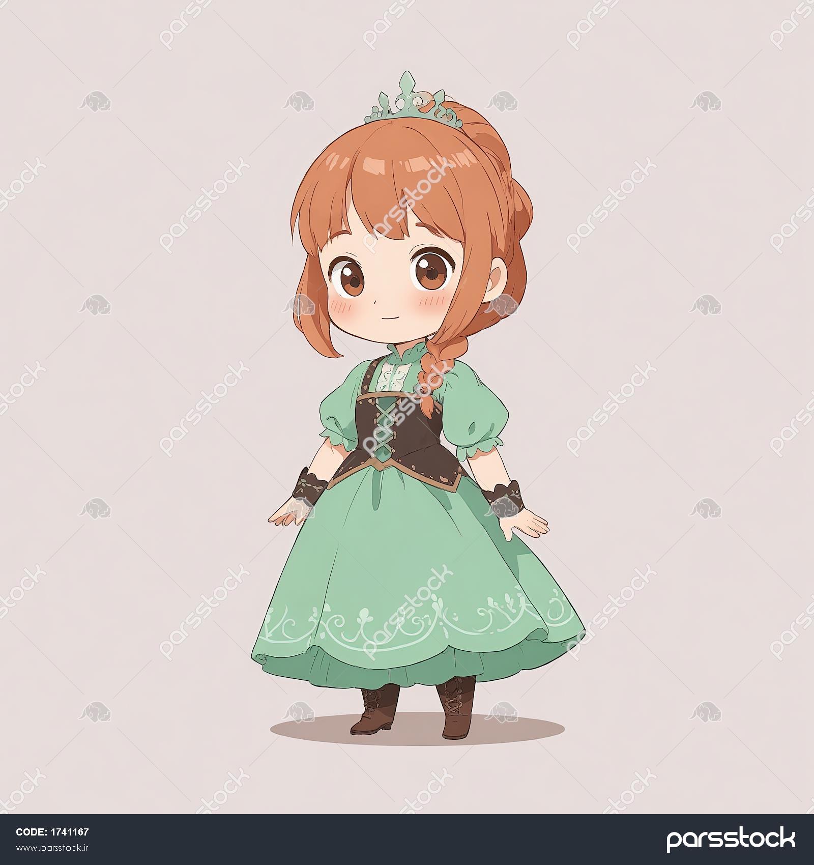 انیمیشن فروزن: پرنسس آنا با مدل موی بافته شده، وکتور چیبی تمام‌قد، تصویرسازی کارتونی شیک