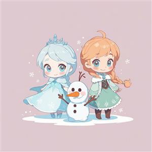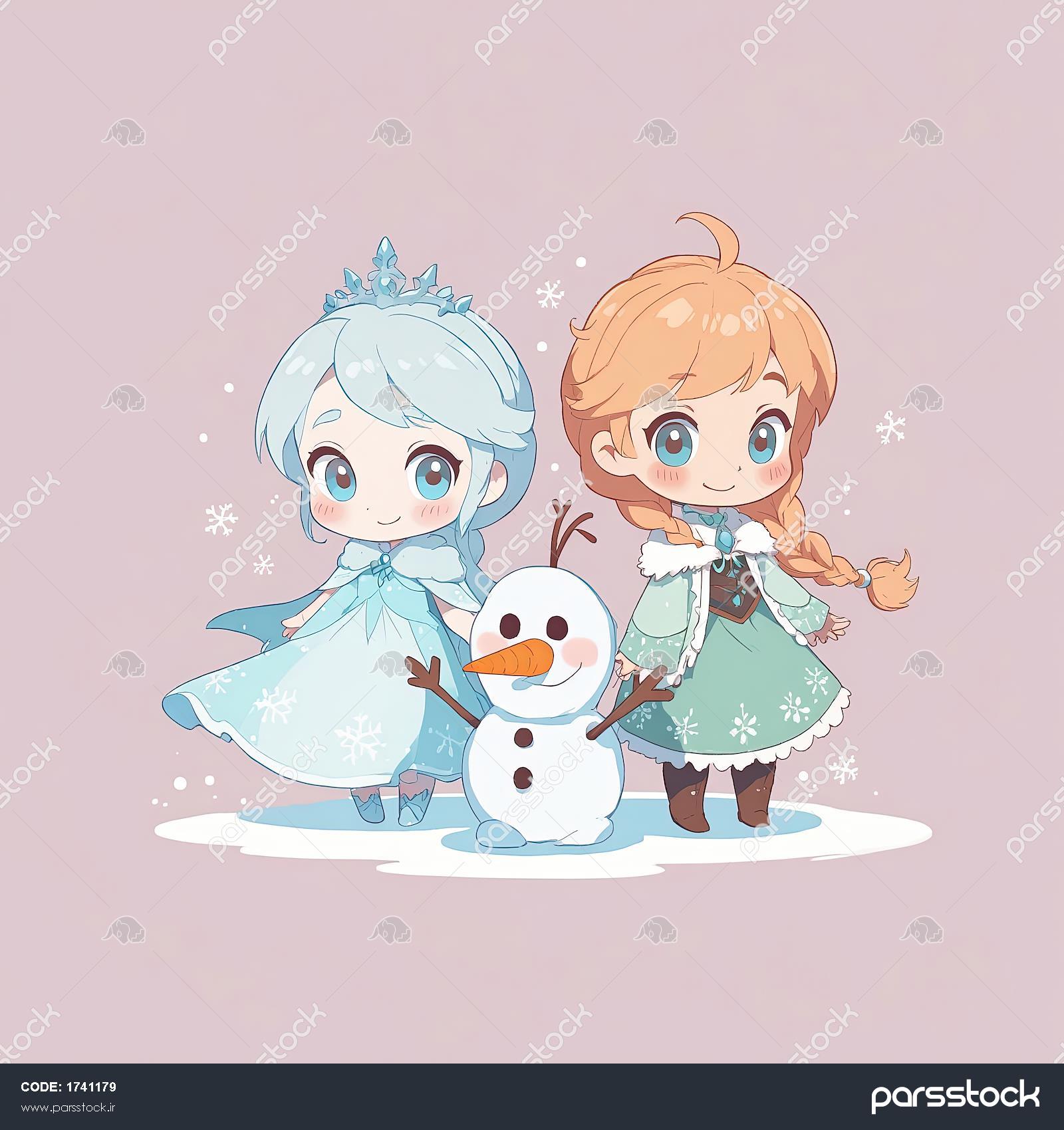 انیمیشن فروزن: السا و آنا با اولاف، وکتور بامزه، طراحی چیبی با تم پاستلی و صورتی