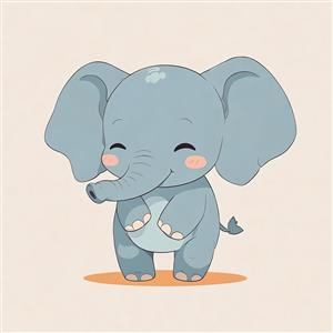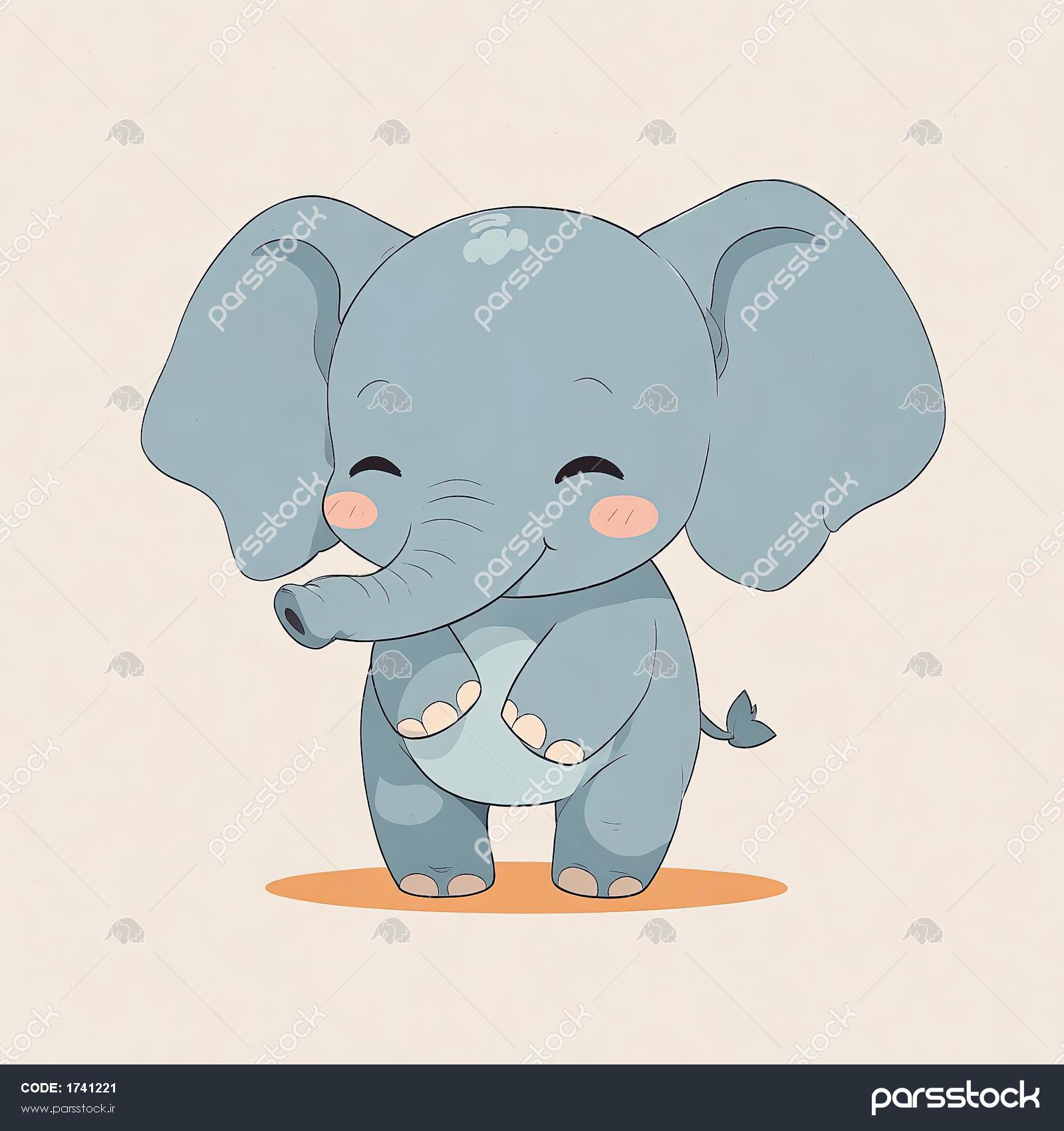 فیل کارتونی بامزه دامبو در حال خنده و خجالت با دست‌های جلو، طرح وکتور مناسب چاپ عریض، پس‌زمینه کرم ملایم