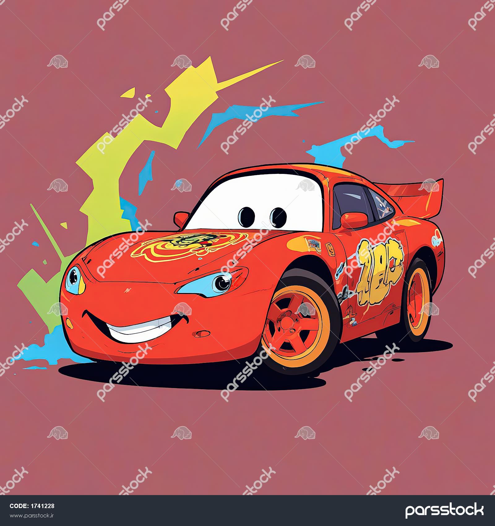 مک‌کوئین (لایتنینگ) انیمیشن ماشین‌ها تصویر وکتور ماشین قرمز ۲۰ با پس‌زمینه پاپ‌آرت رنگی