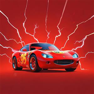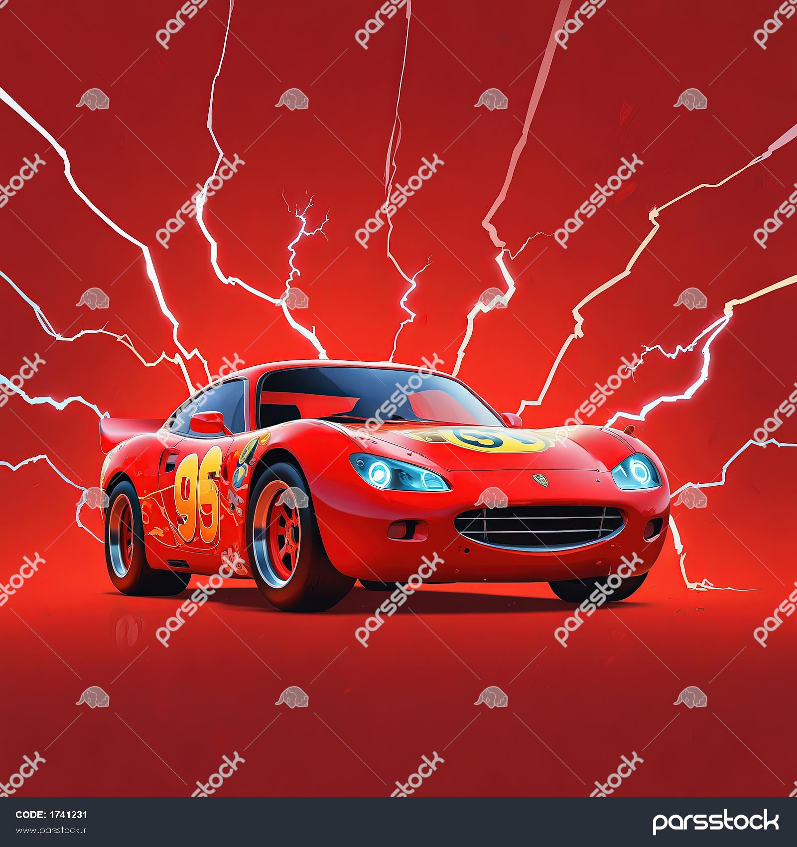 مک‌کوئین (لایتنینگ) انیمیشن ماشین‌ها تصویر سه‌بعدی ماشین قرمز ۹۵ با پس‌زمینه رعد و برق
