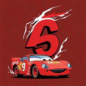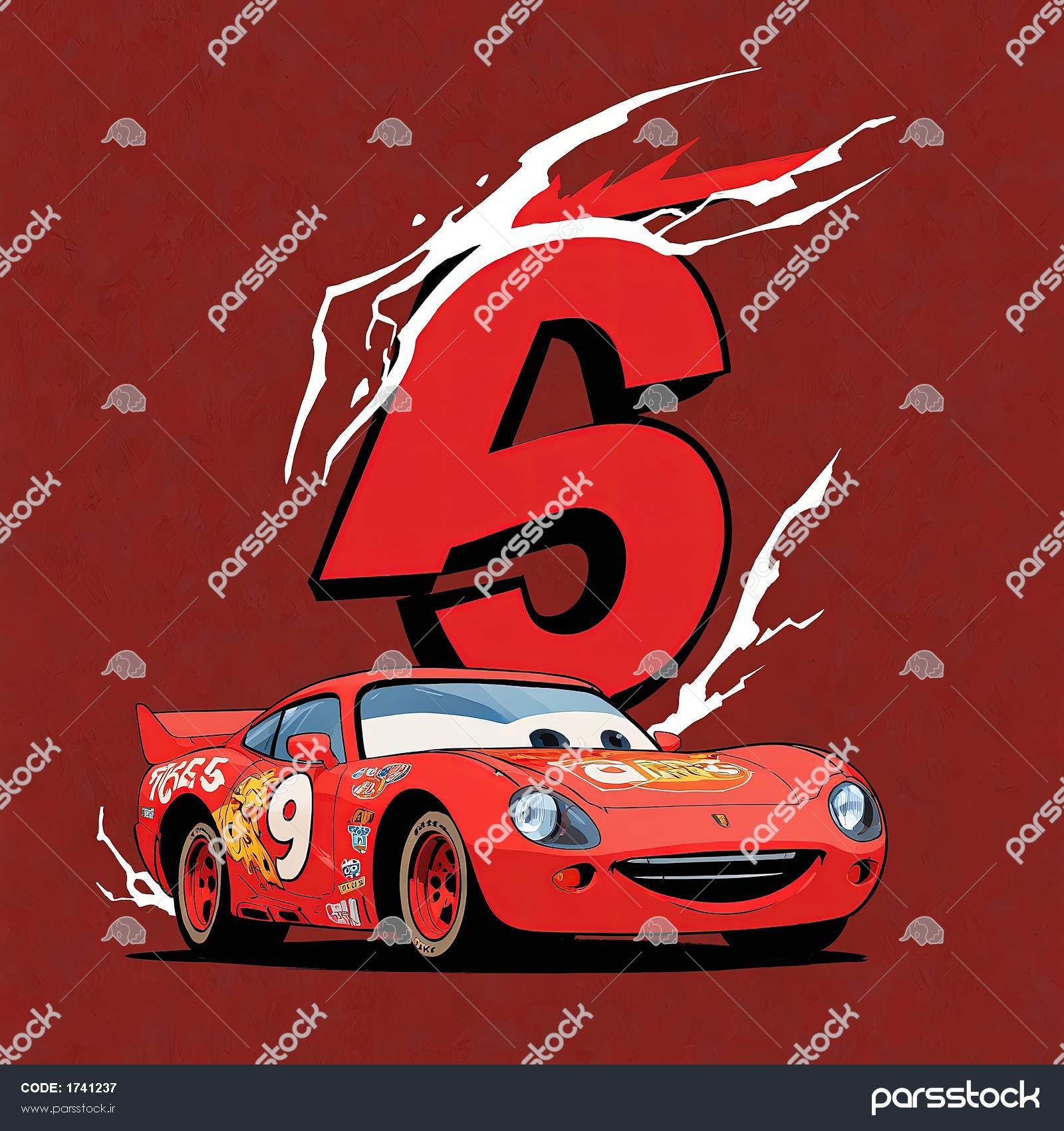 مک‌کوئین (لایتنینگ) انیمیشن ماشین‌ها تصویر وکتور ماشین مسابقه و عدد بزرگ ۶