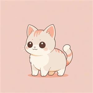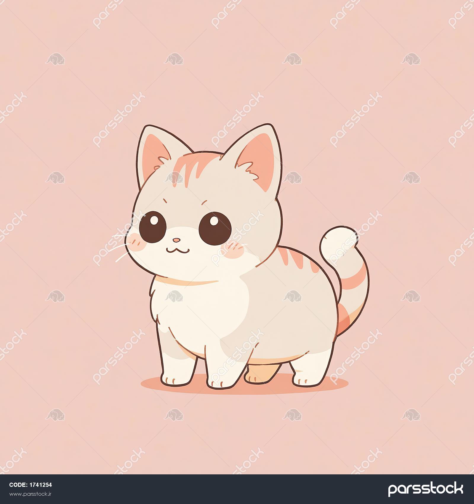 بچه گربه انیمه‌ای بژ و صورتی (نکو) تصویر کیوت کارتونی ایستاده وکتور برای چاپ تابلو