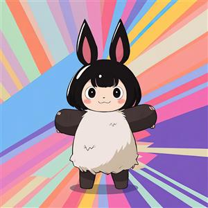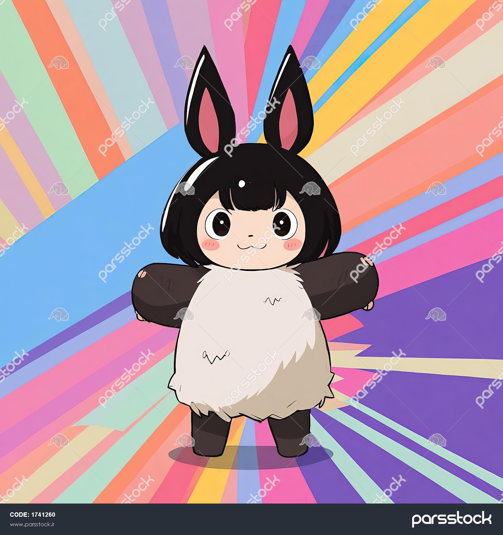 شخصیت انیمه‌ای لباس خرس (بانی) تصویر عروسکی دختر در لباس خرگوش پس زمینه رنگارنگ