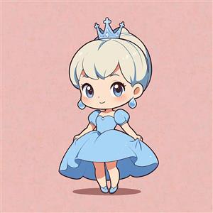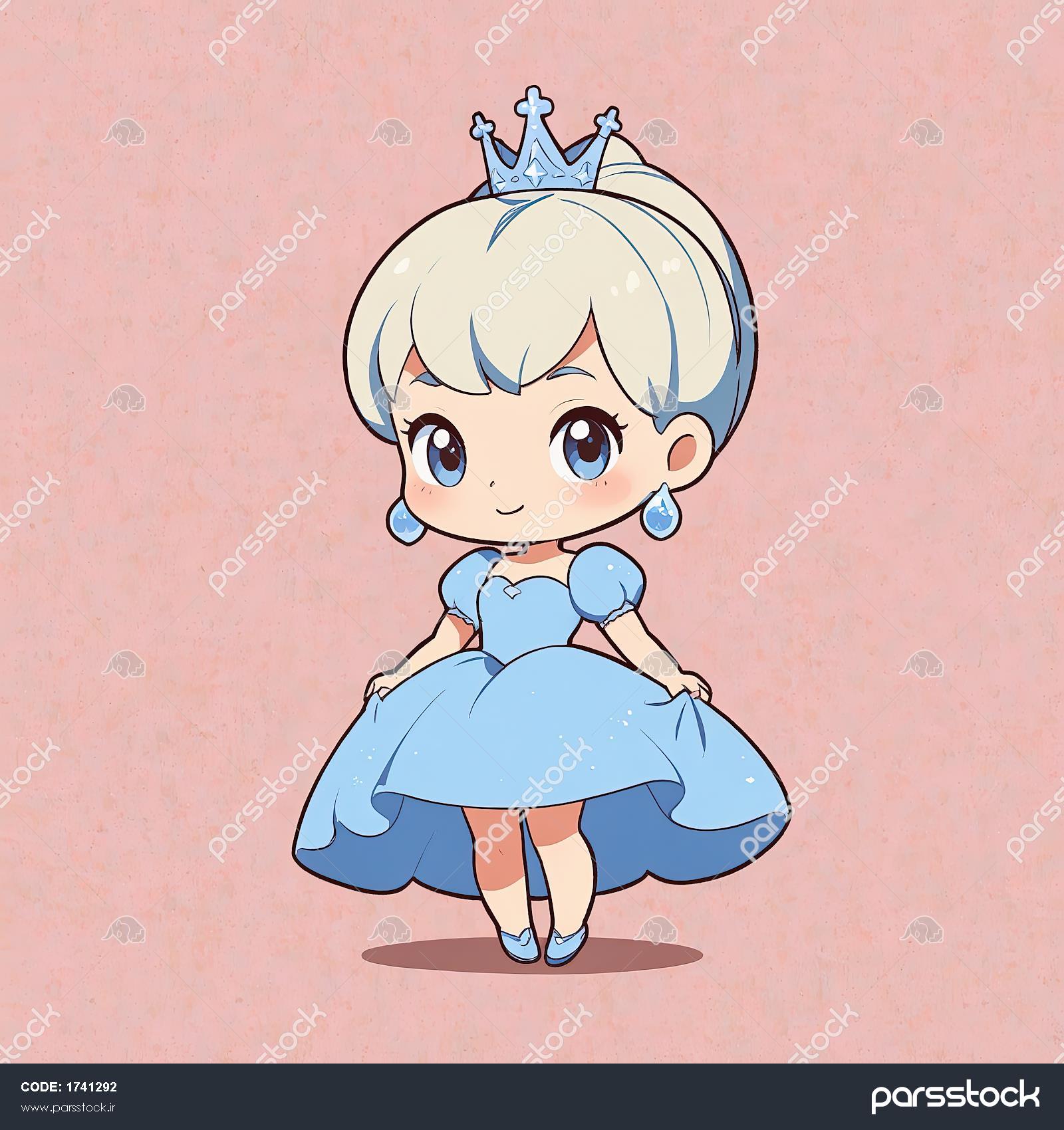 سیندرلا چیبی: تصویر شخصیت کارتونی با تاج کریستالی و موی سفید بلوند در پس‌زمینه صورتی ساده