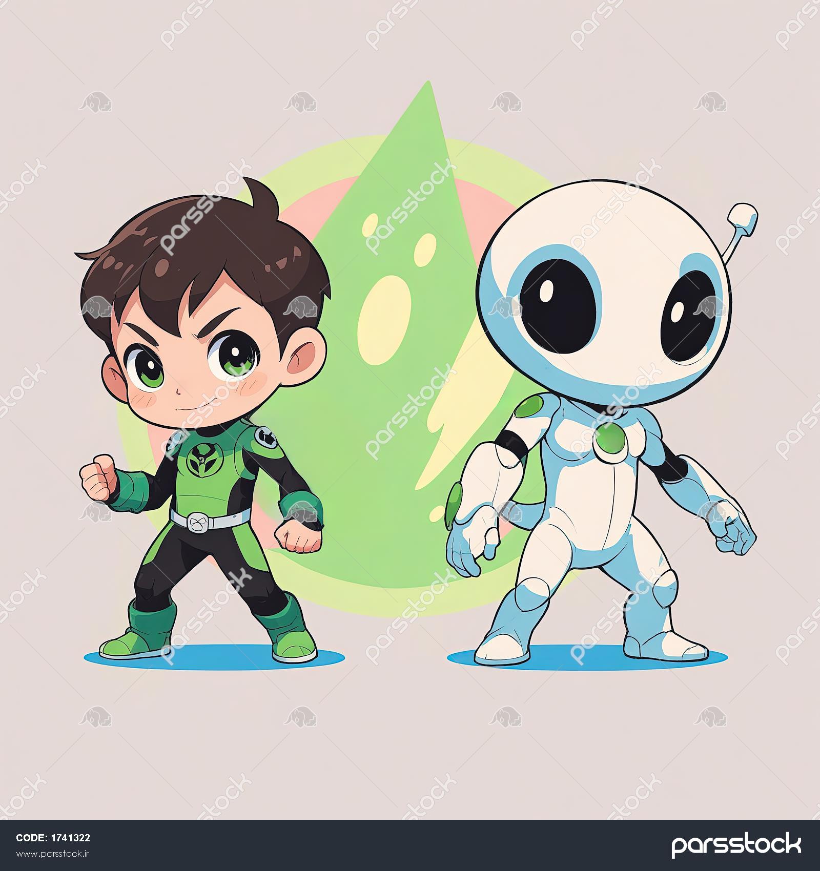 بن تن چیبی: تصویر بنجامین با لباس ارتشی (نظامی) در کنار هیولای بیگانه سبز رنگ (وایلد مات) بن 10 لباس فضایی / بن تن / تصویرسازی رنگارنگ فانتزی / بن تن در لباس فضایی سبز تیره و مشکی در حالت قدرت، پسزمینه رنگینکمانی از ابر و ستارههای درخشان و پر انرژی بن تن ابرقهرمان / بن 10 / تصویرسازی کمیک / بن تن چیبی با لباس کامل سیاه و سبز و دستکشهای بزرگ، ایستاده در وضعیت قدرت، پسزمینه دایرهای بزرگ زرد با نورهای ستارهای بن تنیسون لباس کلاسیک / بن 10 / تصویرسازی چیبی / بن تن در لباس کلاسیک سفید، سبز و مشکی در حال راه رفتن، با پسزمینه بنفش ملایم و ذرات نورانی و درخشش فانتزی بن 10 پسر قهرمان / بن تن / نقاشی دیجیتال چیبی / بن تن با لباس سبز و سیاه در حالتی آماده برای مبارزه، با افکت انرژی آبی موجی و ذرات نورانی بر پسزمینه دایرهای زرد روشن بن تن در حال مبارزه / بن 10 / تصویرسازی گرافیکی / بن تن چیبی با لباس سیاه و سبز در حالت مبارزه و مشت گره کرده، احاطه شده با هالهای از انرژی آبی و دایرهای فیزیکی بر پسزمینه بنفش بن تن چیبی: تصویر اکشن بن تن با لباس فضایی سفید و سبز در حالت مبارزه با افکتهای رنگی بن تنیسون / بن 10 / تصویرسازی دیجیتال کارتونی / تصویرسازی چیبی بن تن با لباس ابرقهرمانی فضایی سفید، مشکی و سبز، ایستاده با دستهای مشت شده، پسزمینه ساده بژ با افکتهای نور وکتور بن تن با لباس سبز و محافظ دست، طرح چیبی کاوایی کاراکتر انیمیشنی برای پوستر دیواری بن تنیسون با آمنیتریکس، کاراکتر قهرمان انیمیشنی در لباس سبز وکتور چیبی، مناسب چاپ تابلو نمایش همه