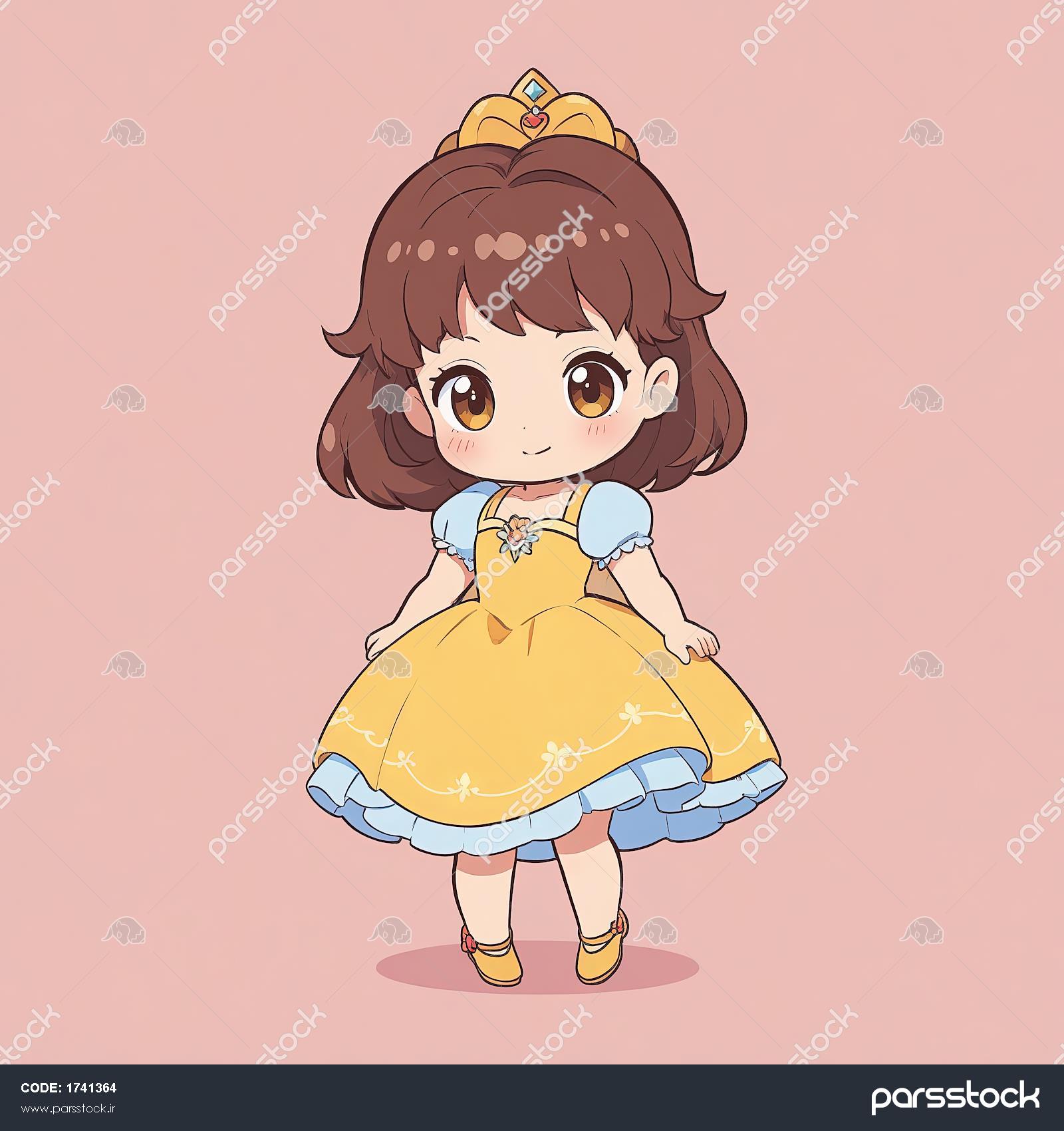 وکتور کارتونی پرنسس بل در انیمیشن دیو و دلبر ایستاده با دامن چین‌دار