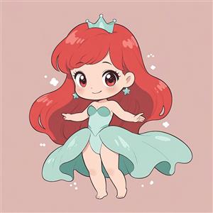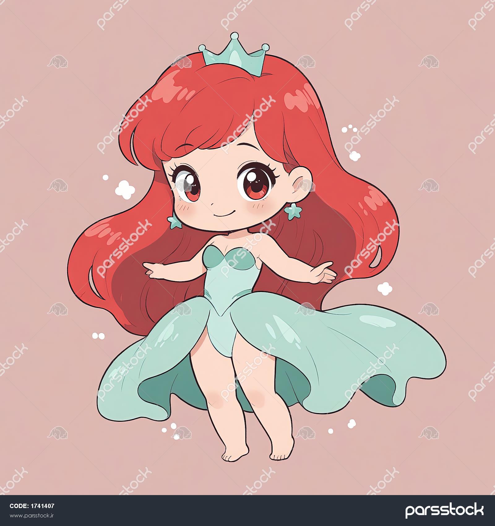 وکتور شاهزاده آریل گوگولی با تاج سبز و لباس پره‌ای برای محصولات چاپی کودک