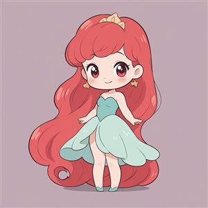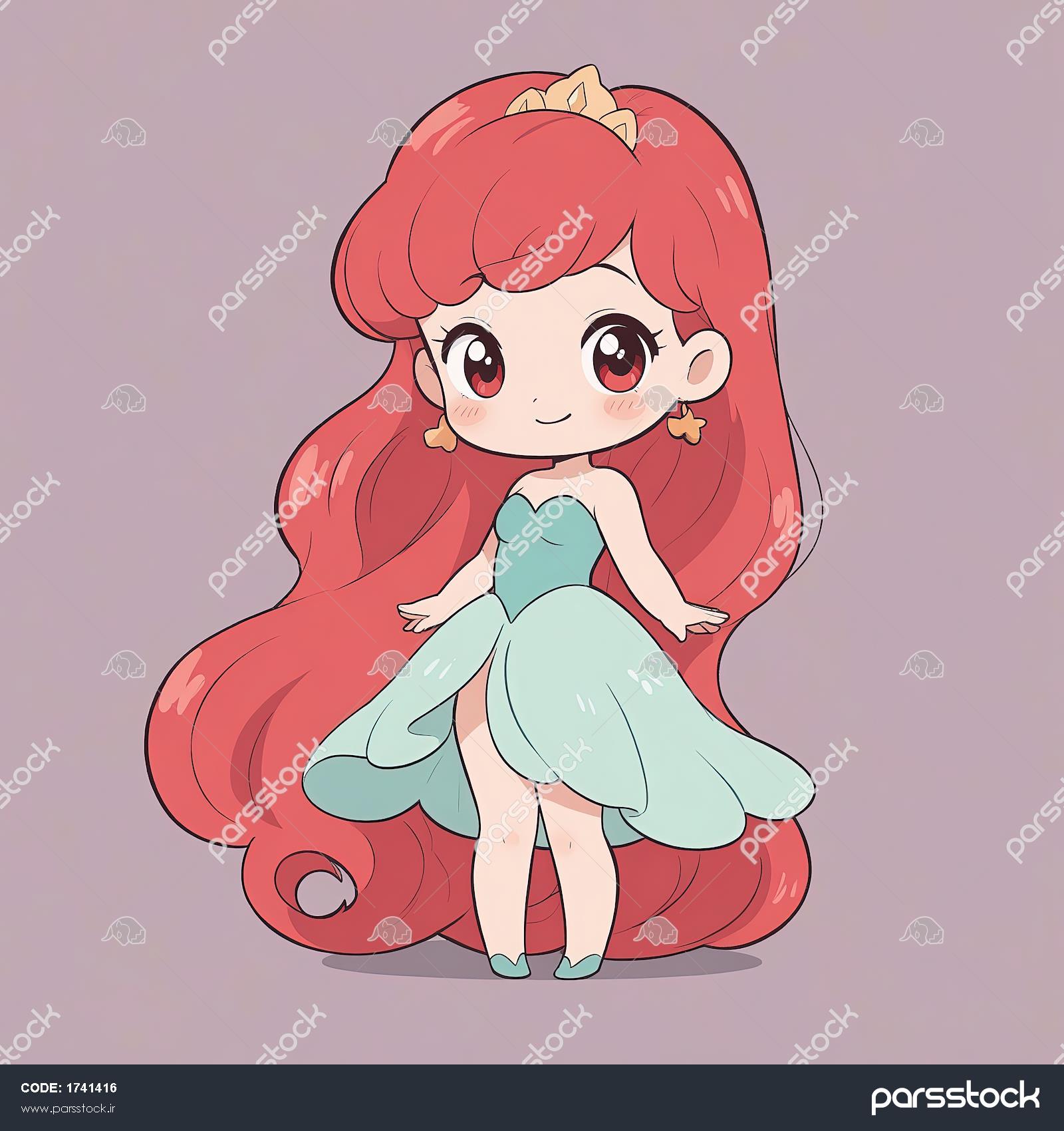 وکتور کاراکتر کارتونی بامزه پرنسس مو قرمز با موهای بلند و لباس پره‌ای برای تابلو