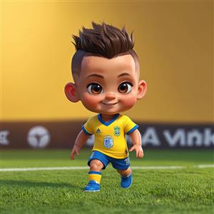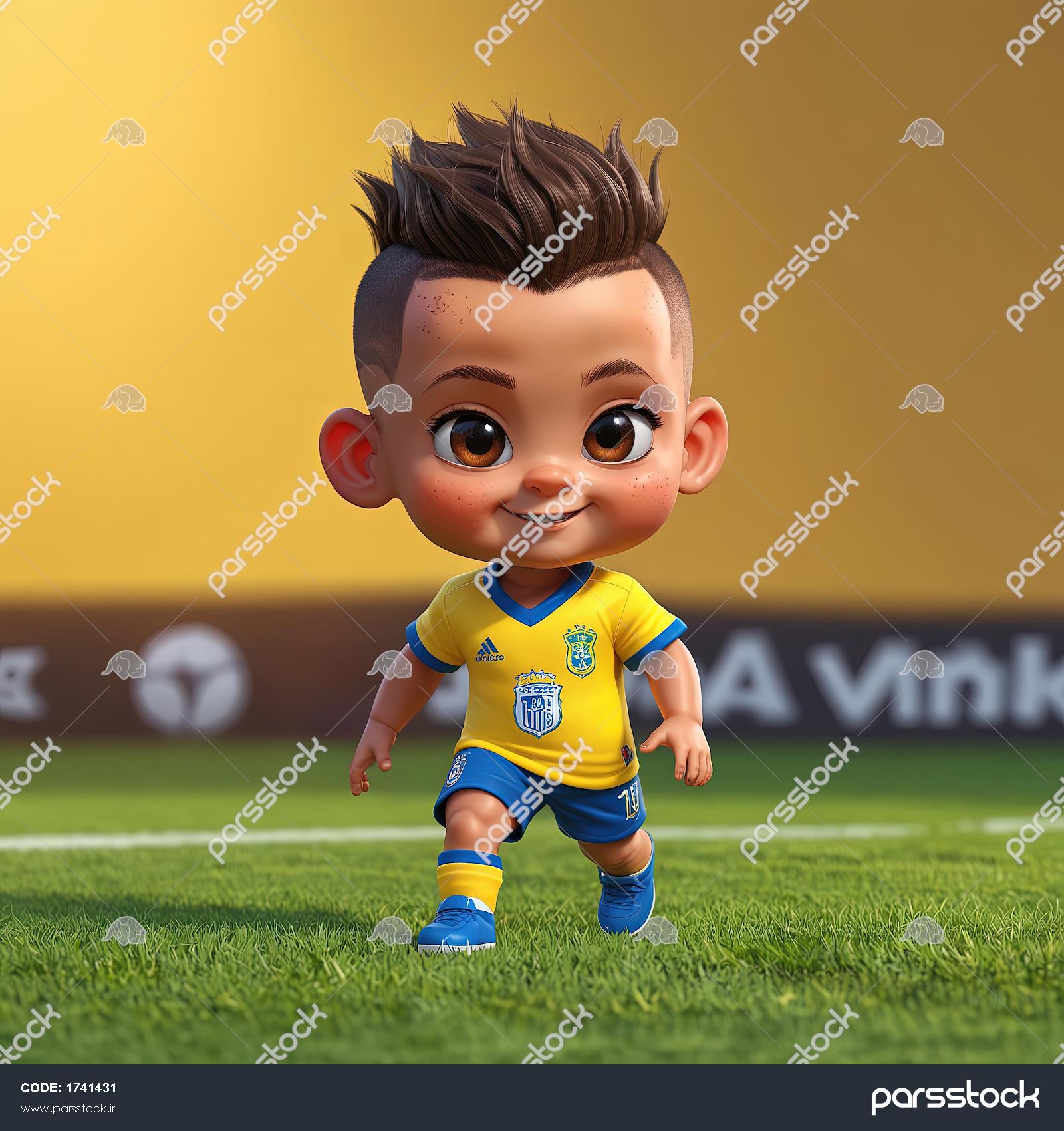 نیمار کارتونی در زمین فوتبال با پس زمینه زرد و لوگوی ورزشگاه