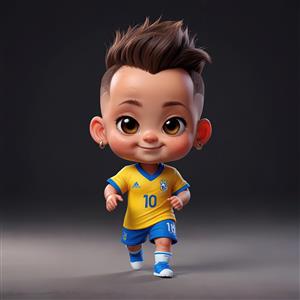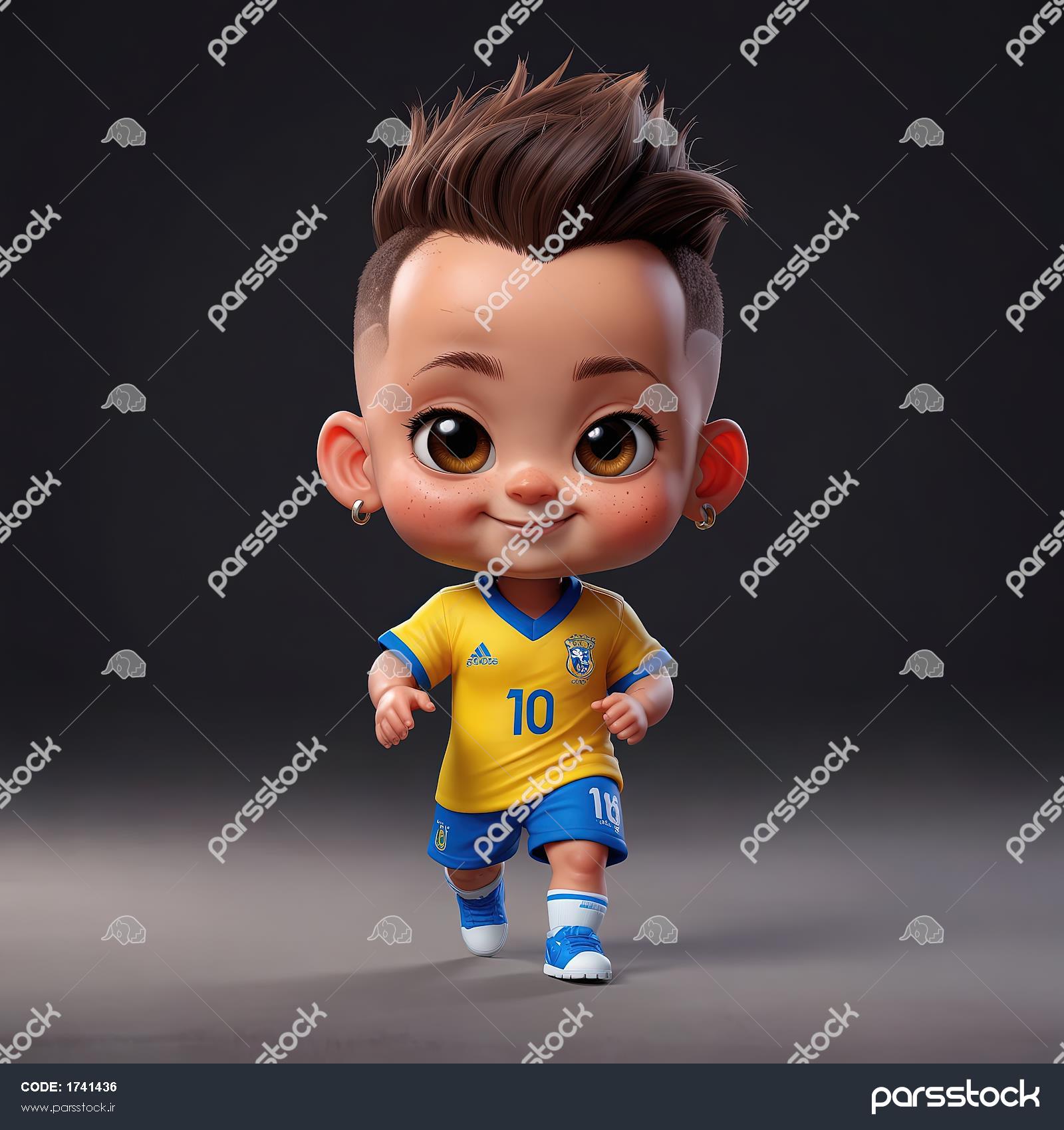 نیمار کارتونی جوان با پیراهن شماره 10 برزیل در حال دویدن