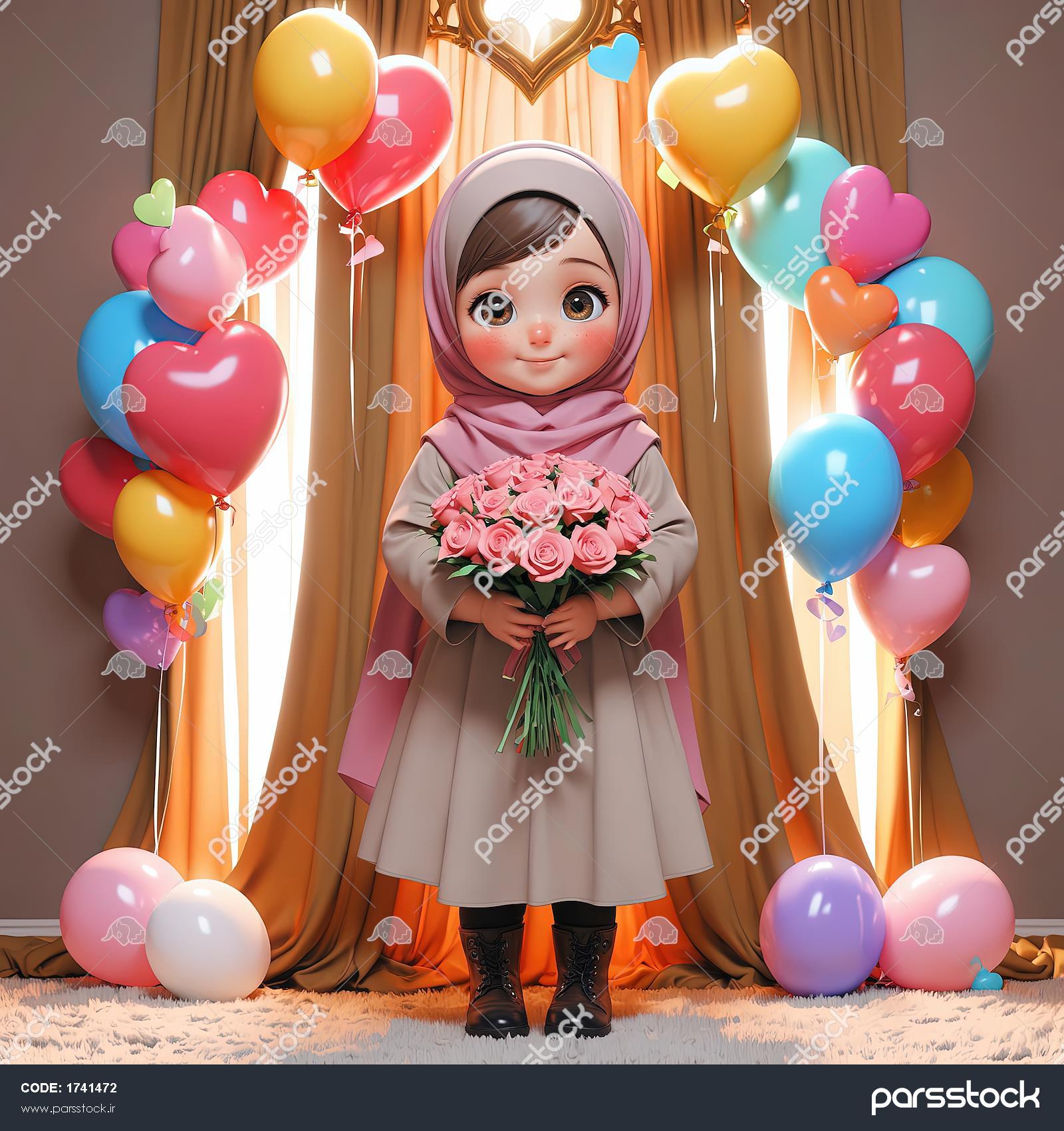 تصویر سه بعدی دخترک محجبه با آرک بادکنکی و گل رز صورتی برای چاپ تابلو دکوراتیو پوستر تولد/جشن تکلیف، دختر محجبه با لباس بژ و دسته گل رز صورتی پوستر دکوراسیون مجلل، دختر محجبه با دسته گل رز قرمز در فضای کلاسیک تصویر سه بعدی دخترک محجبه با قلب قرمز و طاق گل رز برای دکوراسیون ولنتاین عکس سه بعدی دختر محجبه با دسته گل رز صورتی و لباس سفید توری (مناسب چاپ) تصویر عروسکی مناسب چاپ، دختر محجبه با دسته گل صورتی و طاق قلبی گل رز پوستر جشن تکلیف، دختر مسلمان در طاق پرده و دکور بالونهای رنگی و گل پوستر جشن تکلیف، دختر مسلمان با دسته گل و دکوراسیون رمانتیک صورتی و آبی تصویر باکیفیت مناسب چاپ، دختر محجبه با دسته گل در دکوراسیون قرمز و قهوهای پوستر عقد/تولد، دختر محجبه با لباس و حجاب صورتی و دسته گل رز رمانتیک نمایش همه