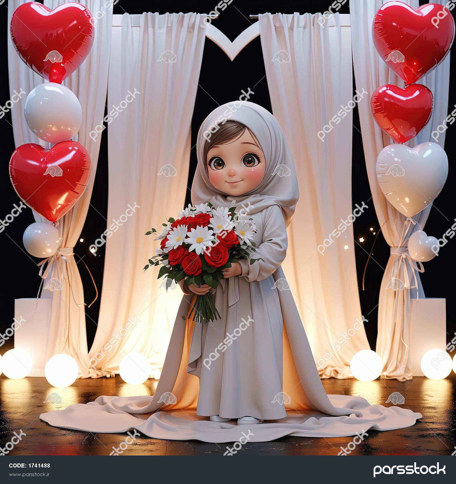 طرح چاپ لوکس، دختر محجبه با لباس بژ و دکوراسیون گلدانی رز و قلب طرح چاپ دکوراتیو، دختر محجبه با لباس صورتی در طاق گل و بادکنکهای رمانتیک طرح دکوراتیو دختر محجبه با لباس بلند و حجاب، دکوراسیون رز قرمز و قلب تصویر باکیفیت مناسب چاپ، دختر محجبه با لباس عروس و دکوراسیون قلب و رز صورتی تابلو دکوراتیو جشن عقد/عروسی، دختر محجبه با لباس سفید در طاق طلایی پوستر جشن تکلیف، دختر مسلمان با دسته گل و دکوراسیون رمانتیک صورتی و آبی تصویر پروفایل کارتونی دختر محجبه با لباس آبی، دسته گل و دو بادکنک قرمز عکس کارتونی دختر با لباس و حجاب قرمز، دسته گل رز و بادکنک قلب صورتی طرح تابلو دکوراتیو، دختر محجبه با لباس سفید و حجاب صورتی در قاب پنجره پوستر دکوراسیون مجلل، دختر محجبه با دسته گل رز قرمز در فضای کلاسیک نمایش همه