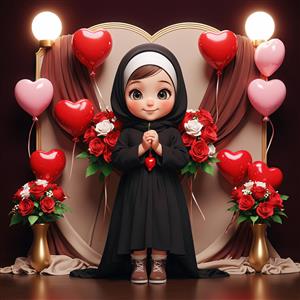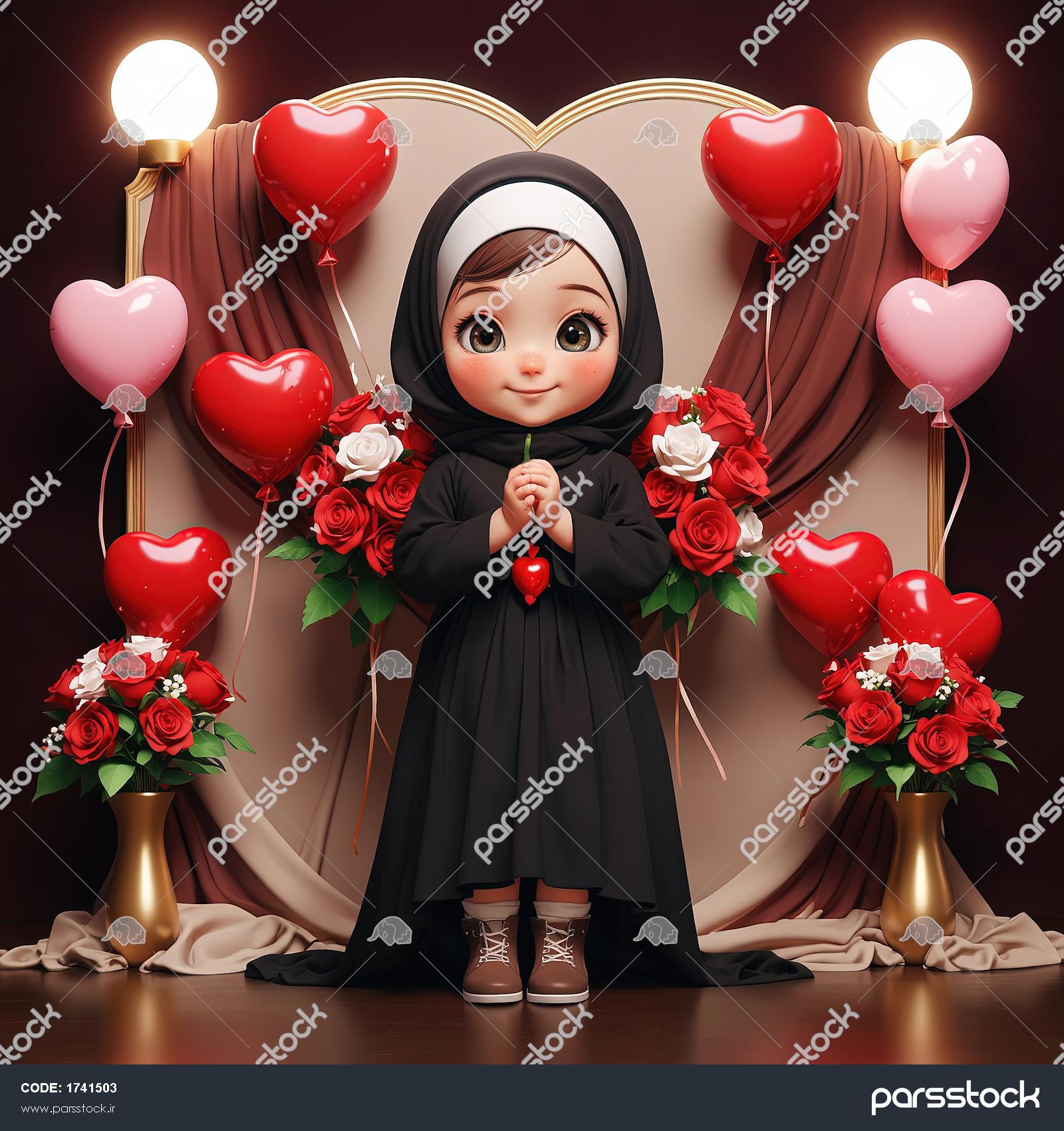 طرح دکوراتیو دختر محجبه با دسته گل صورتی، طاق گل بزرگ رز قرمز و بژ پوستر دکوراسیون مجلل، دختر محجبه با دسته گل رز قرمز در فضای کلاسیک تصویر باکیفیت مناسب چاپ، دختر محجبه با دسته گل در دکوراسیون قرمز و قهوهای پوستر تولد دختر محجبه با لباس صورتی و دسته گل رز قرمز طرح سهبعدی فرشته کودک محجبه با چادر صورتی، زانو زده در حال مناجات (کیفیت بالا برای چاپ دکوراتیو) طرح سهبعدی دختر با لباس کرم و چادر بلند کالباسی در دکور جشن قلبی پوستر تولد/ولنتاین، دخترک عروسکی محجبه با بادکنک قلب قرمز و گلهای رز تابلو دکوراتیو جشن تکلیف، دختر مسلمان در دکوراسیون کلاسیک با قلب و رز طرح هنری و سهبعدی دختر بچه با کلاه ببر و عروسک ببر نارنجی، مناسب چاپ عریض برای دکوراسیون تصویر سه بعدی دخترک محجبه با آرک بادکنکی و گل رز صورتی برای چاپ تابلو دکوراتیو نمایش همه