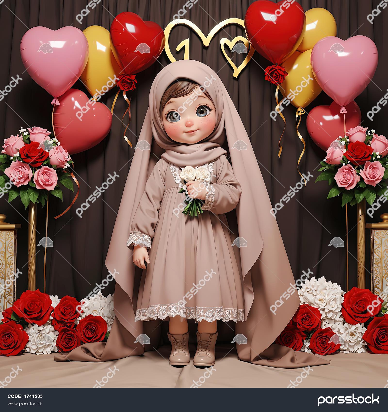 تصویر عروسکی مناسب چاپ، دختر محجبه با لباس سفید و دکوراسیون رز و قلب صورتی تابلو دکوراتیو جشن تکلیف، دختر محجبه با لباس مشکی و گلدانهای طلایی پوستر باکیفیت جشن، دختر محجبه با لباس بژ و دسته گل سرخ در دکوراسیون سفید تابلو دکوراتیو جشن عقد/عروسی، دختر محجبه با لباس سفید در طاق طلایی تابلو دکوراتیو جشن عقد/تکلیف، دختر محجبه با لباس سفید و دسته گل رز صورتی پوستر عقد/تولد، دختر محجبه با لباس و حجاب صورتی و دسته گل رز رمانتیک پوستر تولد دختر محجبه با لباس صورتی و دسته گل رز قرمز پوستر تولد/جشن تکلیف، دختر محجبه با لباس بژ و دسته گل رز صورتی تابلو جشن تولد/عقد، دختر محجبه با لباس شیک و بالونهای قلبی و تزیینات طلایی تصویر رمانتیک دختر محجبه با لباس سفید، دسته گل رز و پسزمینه قلب نمایش همه