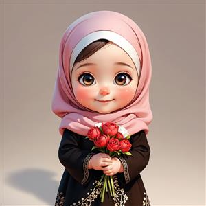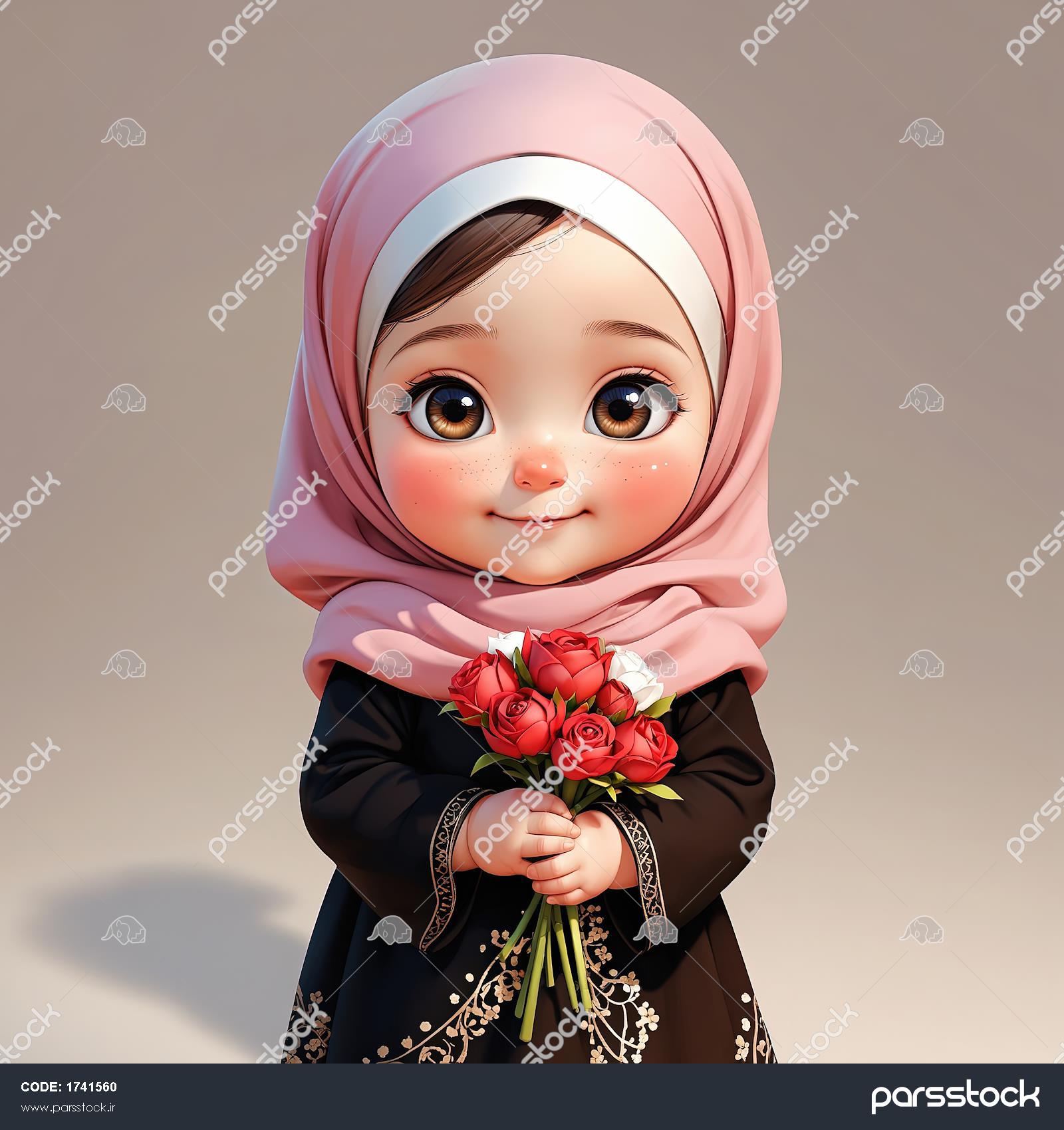 تصویر سه‌بعدی پرتره نزدیک از دختر محجبه با رزهای سرخ