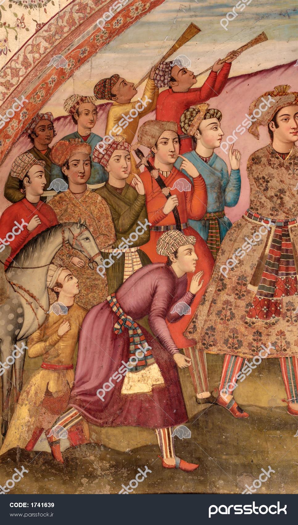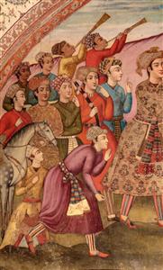 پرتره درباریان نقاشی چهلستون اصفهان سربازان صفوی اسب