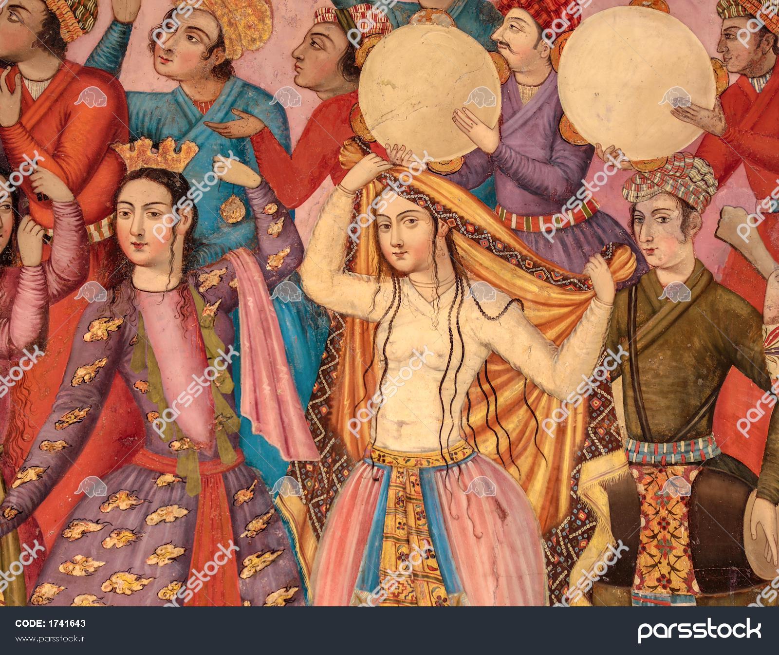 نقاشی دو زن صفوی با دف بزرگ و کوزه در طبیعت چهلستون اصفهان (موسیقی و بزم) نقاشی دلبر صفوی با لباس آبی و ساز و سهتار در حال بزم و نوشیدن در چهلستون نقاشی دلبر صفوی با لباس آبی و کلاه سفید در حال نواختن بربط (یا تار) در چهلستون تصویر رقص زنان (رقاصهها) و نوازندگان در مجلس بزم شاهی در نقاشی دیواری چهلستون نقاشی شاهزاده زن با تاج و کودک در آغوش در کاخ چهلستون اصفهان نقاشی پرتره مرد با کلاه پردار و لباس دوره صفوی در کاخ چهلستون اصفهان نقاشی دیواری عالی قاپو اصفهان، تصویر زن با لباس سنتی نقاشی چهارشنبه سوری و زن رقاص و درباریان با لباسهای سنتی دوره صفویه گروه نوازندگان در ضیافت چهلستون اصفهان – نقاشی دیواری صفوی تصویر نمای نزدیک از رقاصههای زن در حال رقص با لباسهای سنتی در نقاشی چهلستون نمایش همه