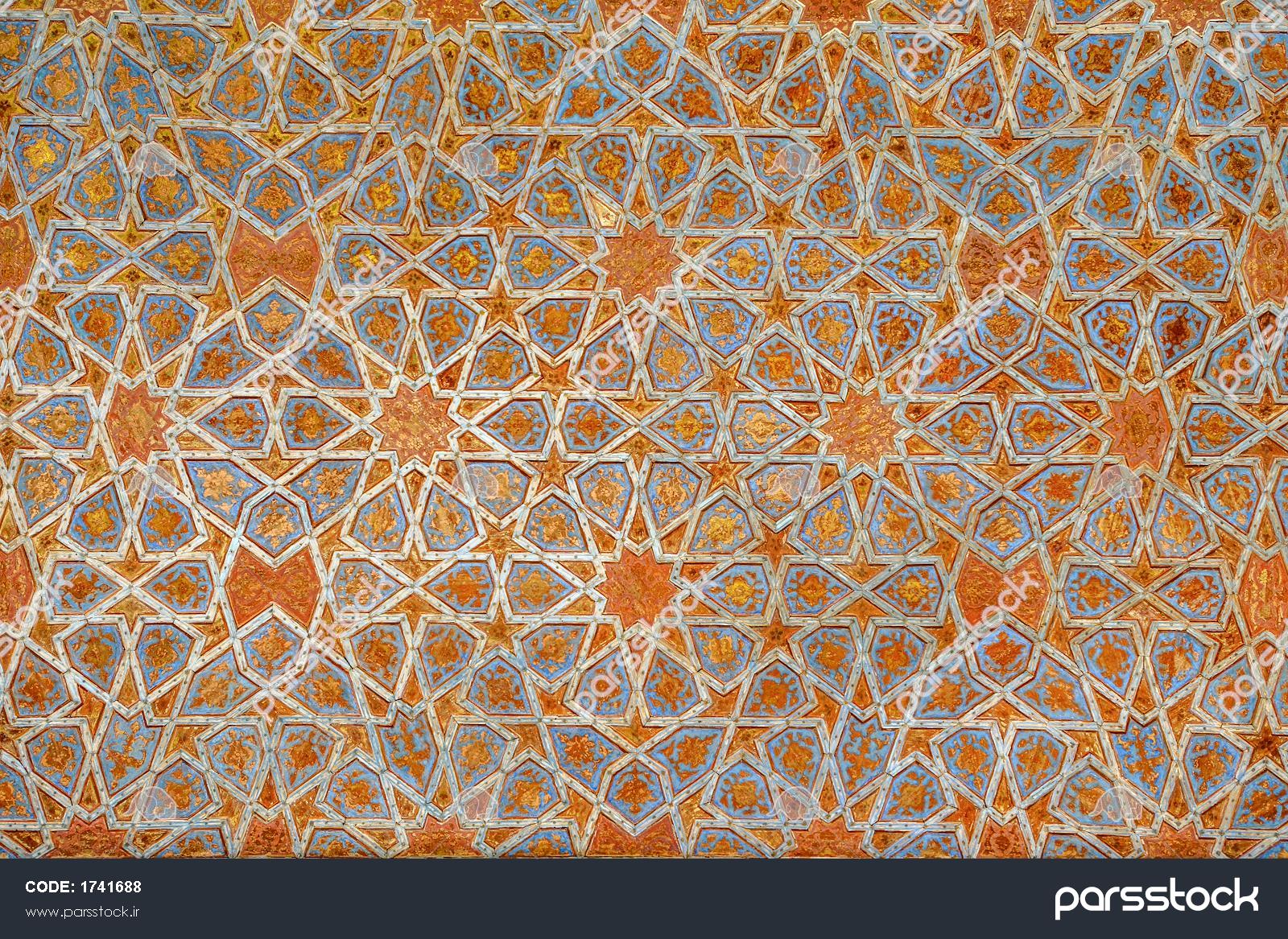 الگوی گره‌چینی و کاشی‌کاری مینیاتوری سقف چهلستون مناسب پس‌زمینه دکوراتیو