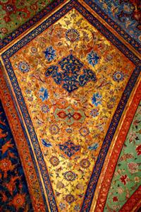 تصویر سقف چوبی تالار اصلی با تزئینات آینهکاری مربعی و نقوش کندهکاری شده جزئیات نزدیک از نقوش طلاکاری اسلیمی سقف و طاقچه کاخ چهلستون جزئیات سقف عالی قاپو اصفهان، نقوش گل و برگ و طرحهای هنری نگارگری رقص دختر زیبا با دست و پای حنا بسته سقف تزئینی عالی قاپو اصفهان، با نقوش پیچیده و رنگارنگ سقف عالی قاپو اصفهان، با ستارههای هندسی و نقوش اسلیمی سقف تالار عالی قاپو اصفهان، با نقوش هندسی و تزئینات سقف عالی قاپو اصفهان، با نقوش هنری و گچبریهای زیبا جزئیات سقف عالی قاپو اصفهان، نقوش پرنده و درخت گوشهای از سقف عالی قاپو اصفهان، با نقوش هندسی و تزئینات نمایش همه