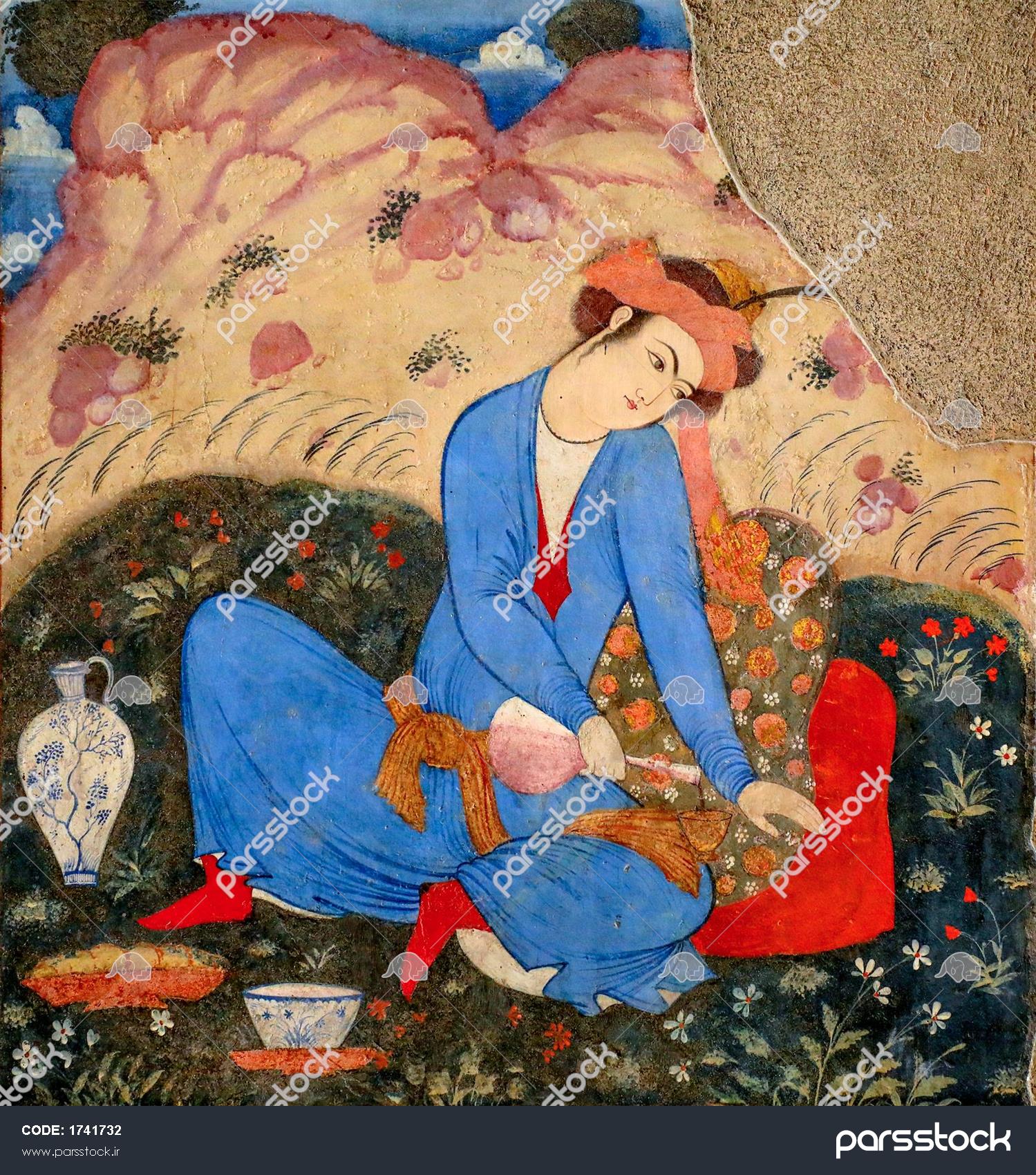 تصویر دلبر صفوی با لباس آبی و کلاه صورتی در حال استراحت در طبیعت کاخ چهلستون نقاشی دلبر صفوی با لباس آبی و کلاه سفید در حال نواختن بربط (یا تار) در چهلستون نقاشی دلبر صفوی با لباس آبی و ساز و سهتار در حال بزم و نوشیدن در چهلستون نقاشی باکیفیت مرد جوان صفوی با لباس قرمز در حال اشاره در طبیعت کاخ چهلستون اصفهان نقاشی زن (دلبر) صفوی با لباس قهوهای در طبیعت و حالتی متفکرانه روی دیوار چهلستون نقاشی دلبر صفوی با لباس قرمز و کوزه چینی در حال شراب ریختن روی دیوار چهلستون تصویر مرد جوان صفوی با لباس زرد گلدار و کلاه سبز در حال نشسته در باغ چهلستون نقاشی سنتی مرد ایرانی با لباس آبی و کلاه در هتل شاه عباسی نگارگری زن با کلاه صفوی و لباس آبی و قرمز (پرتره مینیاتوری چهلستون) نگارگری مرد صفوی با کلاه خزدار و لباس آبی در حال چیدن گل در باغ نمایش همه