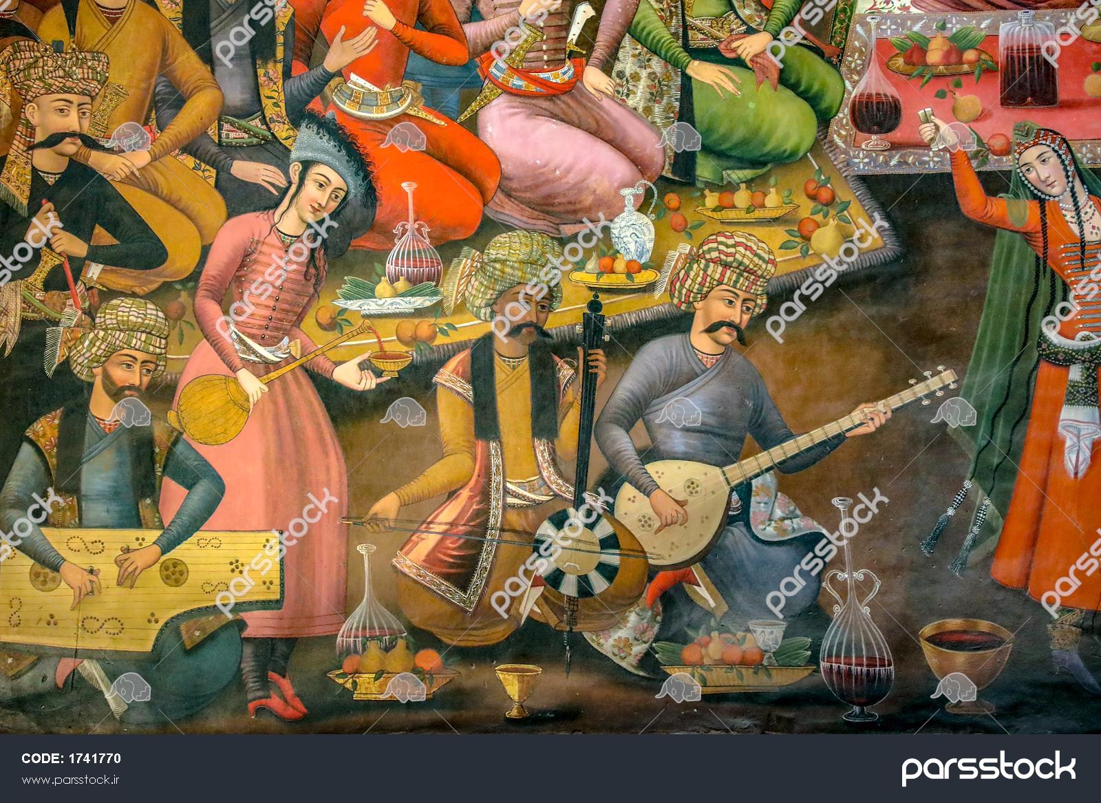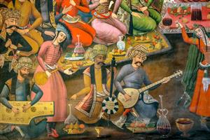 گروه نوازندگان در ضیافت چهلستون اصفهان – نقاشی دیواری صفوی