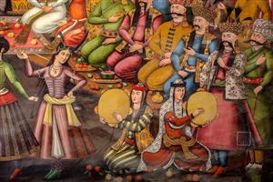 تصویر رقص زنان (رقاصهها) و نوازندگان در مجلس بزم شاهی در نقاشی دیواری چهلستون دانلود عکس نگارگری زن نوازنده دف با لباس صفوی در کاخ چهلستون اصفهان برای چاپ تابلو تصویر نمای نزدیک از بزم شاهی با شاه و مهمانان و رقص زن صفوی در نقاشی چهلستون جزئیات بزم شاهانه چهلستون – پادشاه و سفره صفوی نقاشی اصلی چهارشنبه سوری کاخ چهلستون اصفهان موزه دیجیتال نقاشی دو زن صفوی با دف بزرگ و کوزه در طبیعت چهلستون اصفهان (موسیقی و بزم) نقاشی دو دلبر صفوی (دلدار و ساقی) ایستاده و نشسته در فضای سبز چهلستون اصفهان نقاشی مینیاتوری گفتگوی دلبر و ساقی صفوی در فضای سبز چهلستون اصفهان برای چاپ تابلو نقاشی مینیاتور زن صفوی (دلبر) با لباس بنفش و قرمز در حال جمع کردن گلها در چهلستون اصفهان نگارگری دو دلبر صفوی (زن و مرد) در حال بزم و گفتوگو در فضای سبز چهلستون اصفهان نمایش همه