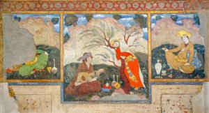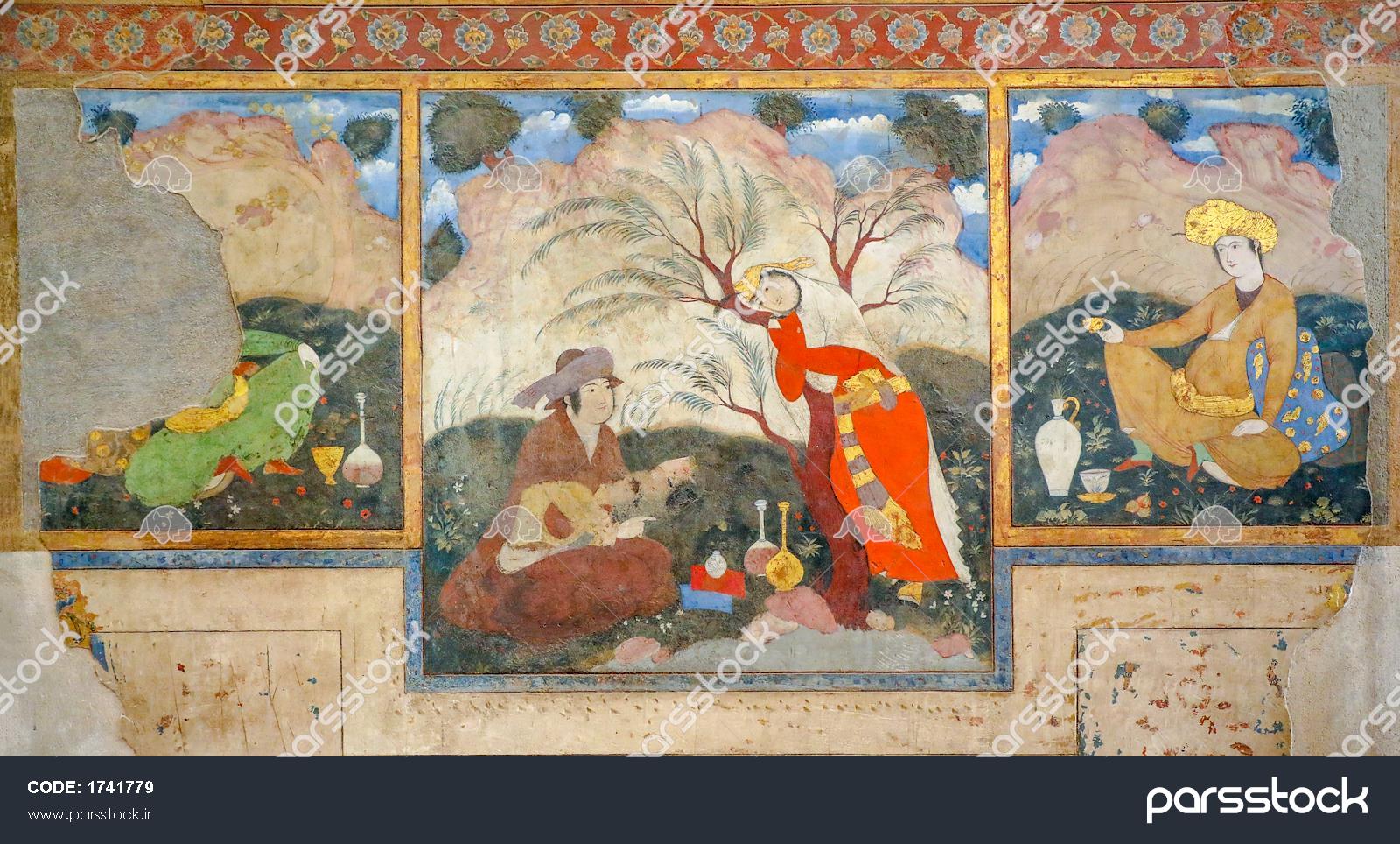 نقاشی دیواری سهتکه (تریپتیک) با موضوع بزم و شکار در طبیعت چهلستون جزئیات نقاشی عاشقانه زن و مرد صفوی زیر درخت (چهرهنگاری چهلستون) نقاشی بزم عاشقانه زن و مرد صفوی زیر درخت در نگارگری چهلستون نقاشی بزم شاهی و فضای باغ، زن و مرد صفوی زیر درخت (مینیاتور) نقاشی زن و مرد صفوی (عاشق و معشوق) با جام شراب در باغ (مینیاتور) جزئیات نزدیک از چهرههای نقاشی بزم عاشقانه زیر درخت چهلستون نقاشی بزم دو مرد صفوی با جام و بطری شراب در فضای باغ نقاشی زن با لباس سبز و سبد میوه در فضای باغ (مینیاتور چهلستون) نقاشی مرد صفوی در بزم، دراز کشیده با لباس فاخر (مینیاتور) نقاشی زن صفوی (ساقی) در حال آمادهسازی بزم در فضای باغ کاخ چهلستون نمایش همه
