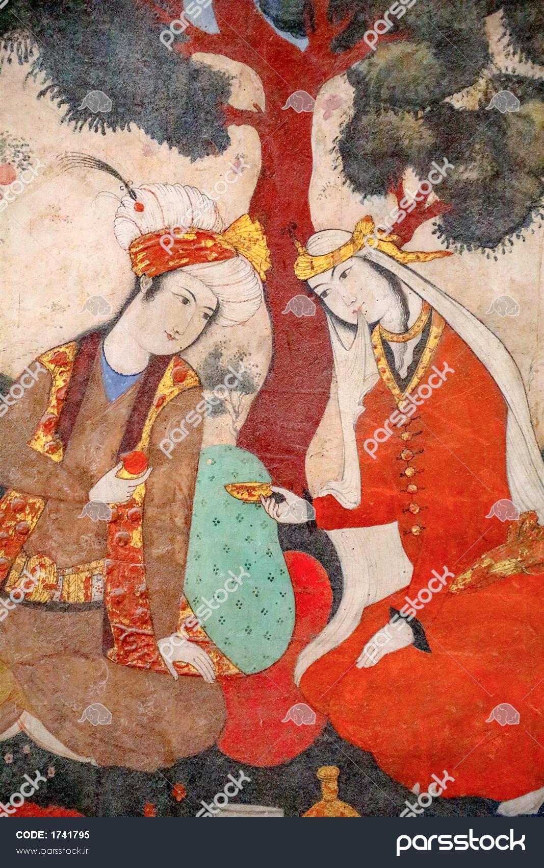 نقاشی زن صفوی (ساقی) در حال آمادهسازی بزم در فضای باغ کاخ چهلستون نقاشی زن صفوی (ساقی) با لباس قرمز در حال آمادهسازی بزم در باغ پرتره مرد صفوی با کلاه و لباس سنتی در فضای باغ (نگارگری چهلستون) نقاشی دیواری سهتکه (تریپتیک) با موضوع بزم و شکار در طبیعت چهلستون نقاشی زن با لباس سبز و سبد میوه در فضای باغ (مینیاتور چهلستون) جزئیات پرتره مرد صفوی (ساقی) در حال نوشیدن یا ریختن نوشیدنی نقاشی بزم سه زن با ساز سنتی در فضای باغ (مینیاتور صفوی) نقاشی اسب، سوارکاران و سربازان در جزئیات نبرد دیواری چهلستون جزئیات نقاشی نبرد، سربازان و سوارهنظام در نگارگری کاخ چهلستون نقاشی دیواری زن و مرد ایرانی در عالی قاپو، شاهکار صفوی نمایش همه