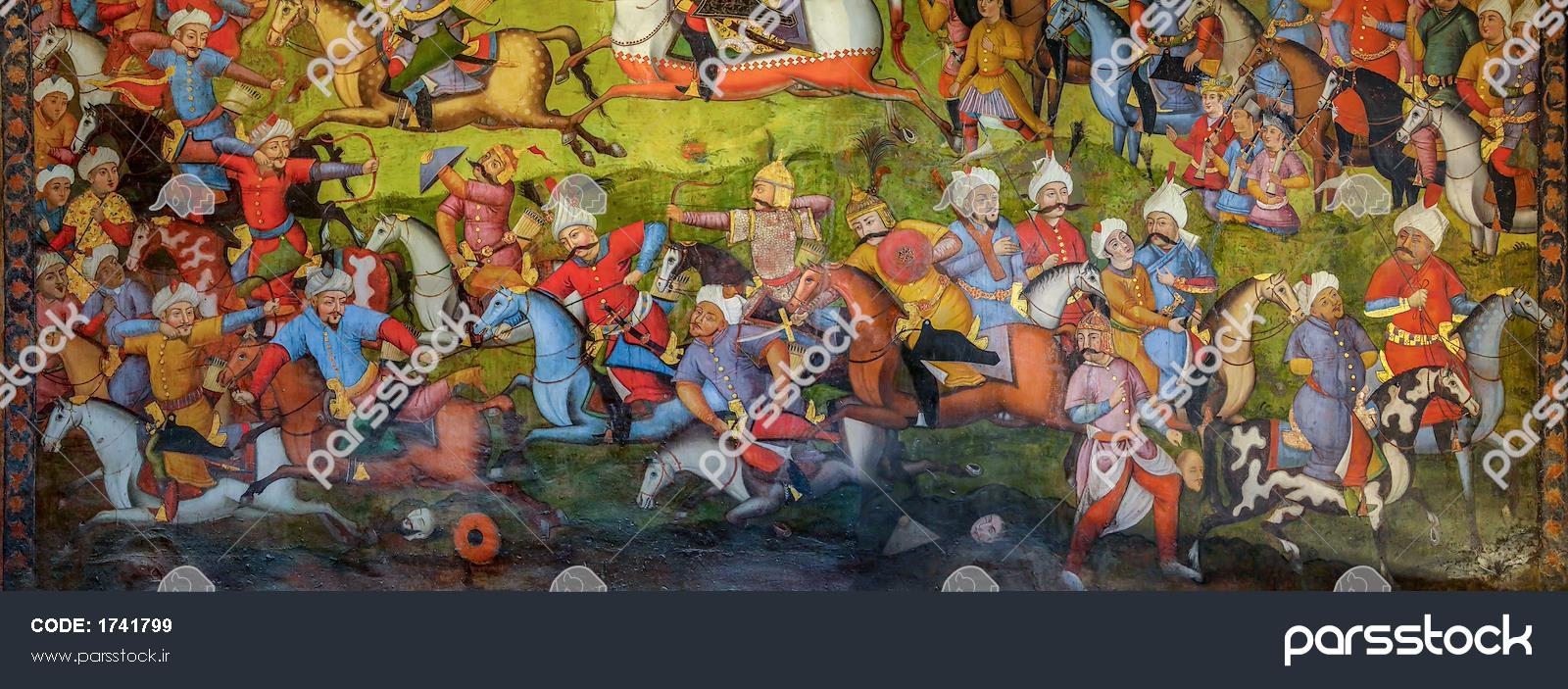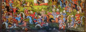 نقاشی افقی میدان نبرد و سواره‌نظام در تالار کاخ چهلستون (پانوراما)