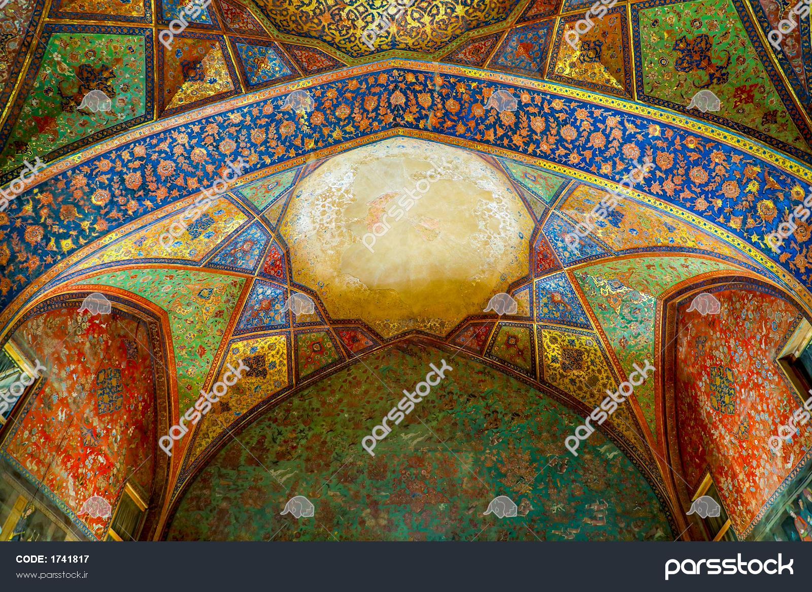 نمای طاق سقف با تزئینات لوزی شکل و نقوش اسلیمی کاخ چهلستون اصفهان الگوی هندسی و نقوش اسلیمی سقف طاقدار کاخ چهلستون اصفهان نمای نزدیک از طرح گل و بوته در تزئینات طاق سقف چهلستون اصفهان سقف طلاکاری شده و تزئینات کاشیکاری هفترنگ کاخ چهلستون اصفهان سقف تزئینی طلاکاری و مقرنسکاری شده کاخ چهلستون اصفهان (نمای نزدیک) سقف طاقدار و نگارگریهای اسلیمی بالای نقاشی نبرد چهلستون نمای نزدیک از نقوش اسلیمی و طلاکاری شده سقف چهلستون (کادر مربع لوزی) جزئیات نزدیک از نقوش طلاکاری اسلیمی سقف و طاقچه کاخ چهلستون عکس نمای عالی از سقف مقرنس و کاشیکاریهای رنگارنگ کاخ چهلستون اصفهان تصویر نمای مورب از سقف و طاقهای رنگارنگ با نقوش اسلیمی و ختایی در بنای صفوی نمایش همه