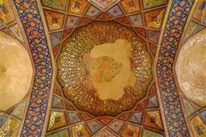 سقف تزئینی طلاکاری و مقرنسکاری شده کاخ چهلستون اصفهان (نمای نزدیک) الگوی هندسی و نقوش اسلیمی سقف طاقدار کاخ چهلستون اصفهان نمای طاق سقف با تزئینات لوزی شکل و نقوش اسلیمی کاخ چهلستون اصفهان نمای قوسی سقف و نقوش اسلیمی زیر گنبد کاخ موزه چهلستون اصفهان نمای نزدیک از طرح گل و بوته در تزئینات طاق سقف چهلستون اصفهان نمای نزدیک از نقوش اسلیمی و طلاکاری شده سقف چهلستون (کادر مربع لوزی) جزئیات نزدیک از نقوش طلاکاری اسلیمی سقف و طاقچه کاخ چهلستون عکس نمای عالی از سقف مقرنس و کاشیکاریهای رنگارنگ کاخ چهلستون اصفهان سقف طاقدار و نگارگریهای اسلیمی بالای نقاشی نبرد چهلستون نقاشی نبرد چالدران یا کرنال زیر سقف طلاکاری شده چهلستون اصفهان نمایش همه