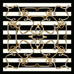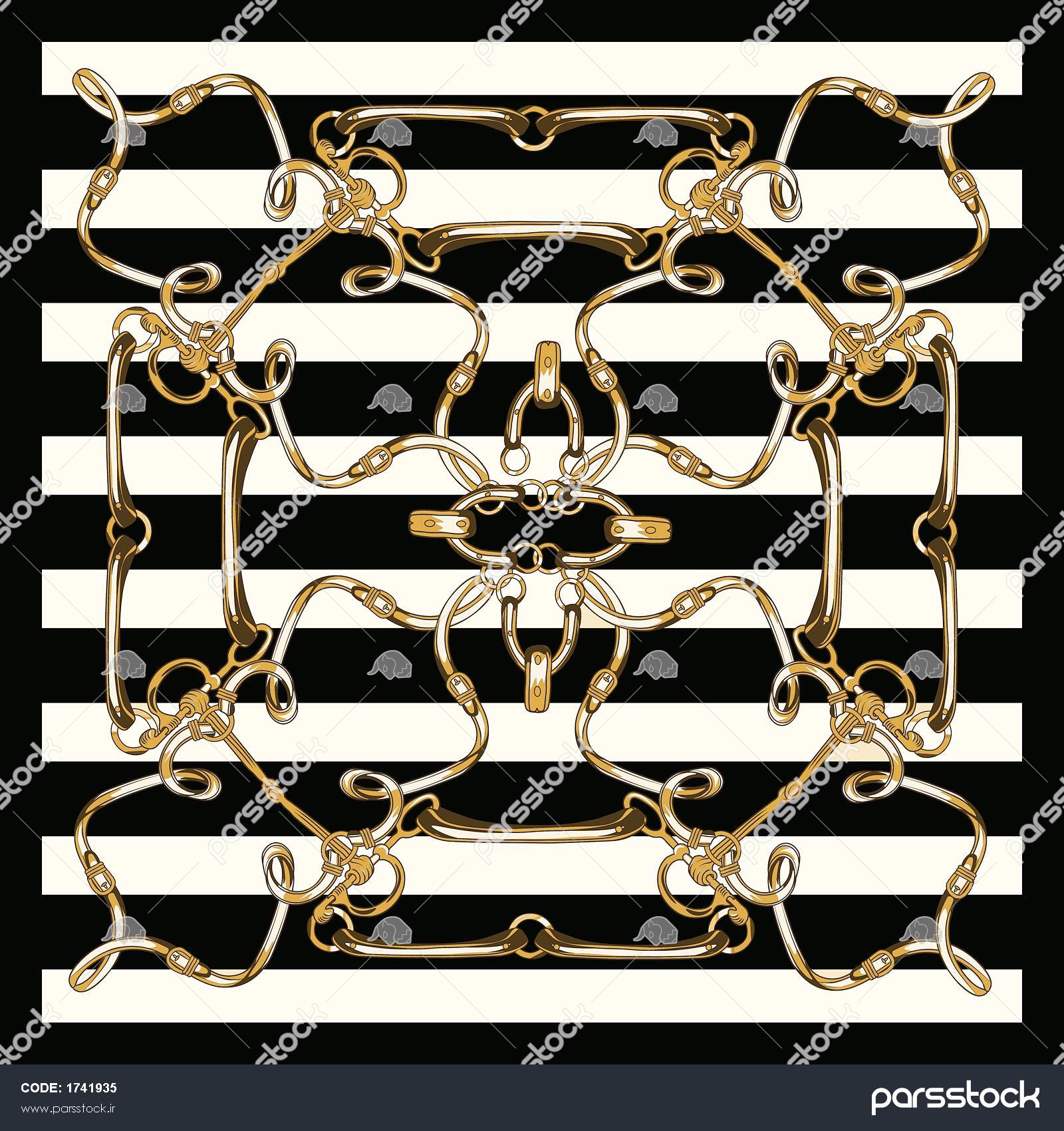 طرح لوکس مهار اسب (Bridle) طلایی روی پترن راه‌راه مشکی و سفید کلاسیک