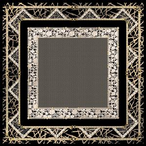 طرح لوکس حاشیه طلایی و گل‌های سفید با پس‌زمینه مشکی چهارخانه ریز برای روسری