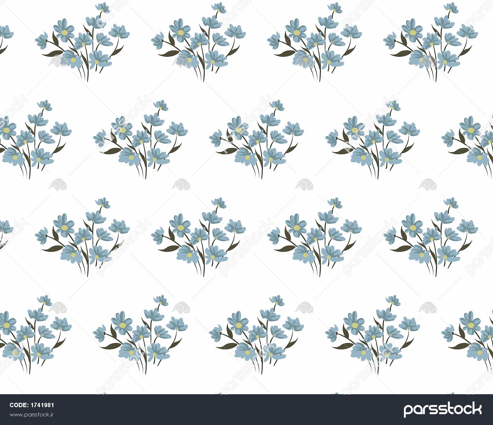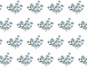 الگوی تکرار شونده خوشه‌های گل‌های ریز آبی رنگ روی زمینه سفید پترن مینیمال و لطیف با نقوش گل بهاری