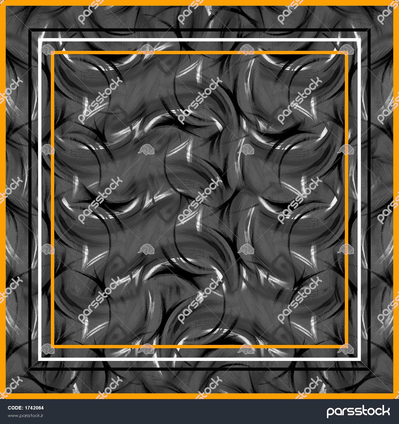 پترن انتزاعی گردابی با خطوط نقره‌ای و مشکی در زمینه خاکستری سیر (مناسب شال و روسری و دکوراسیون مدرن)