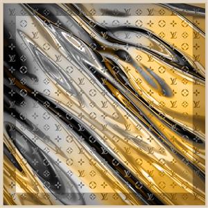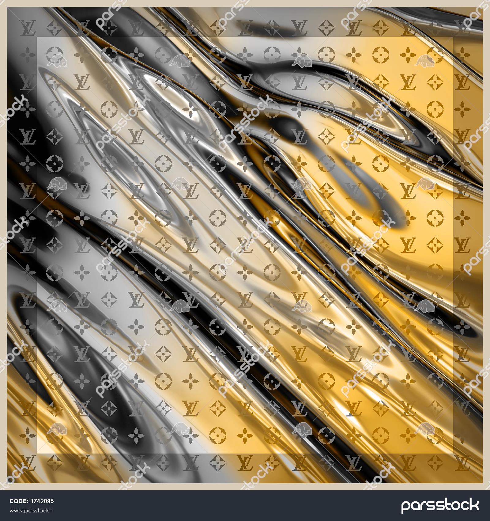بافت مایع و موج‌دار طلایی و مشکی با پترن مونوگرام و مناسب چاپ روسری و کوسن