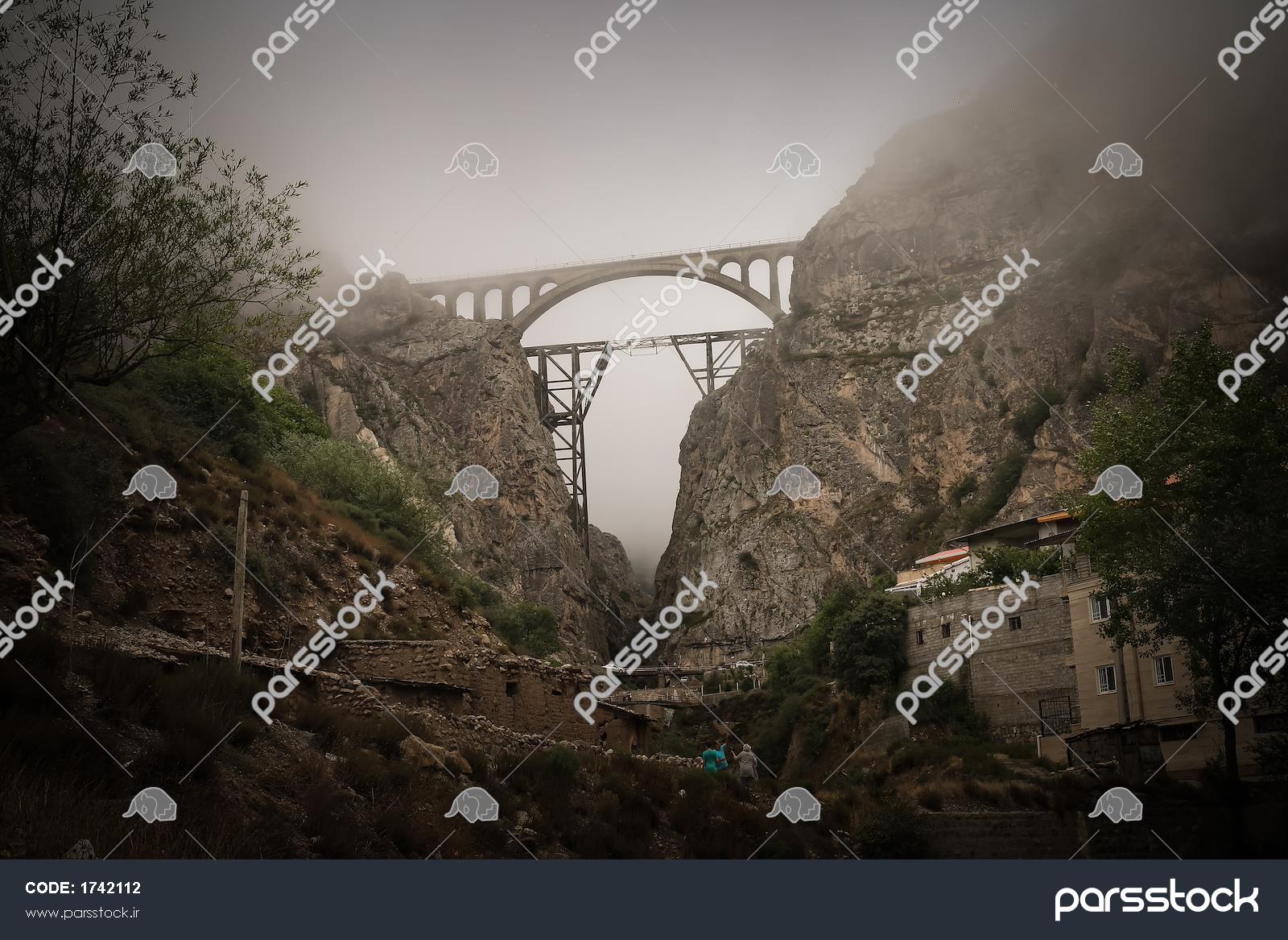 پل ورسک در دل کوه‌های مه‌آلود و صخره‌ای نمایی از شاهکار معماری در ارتفاعات و طبیعت کوهستانی